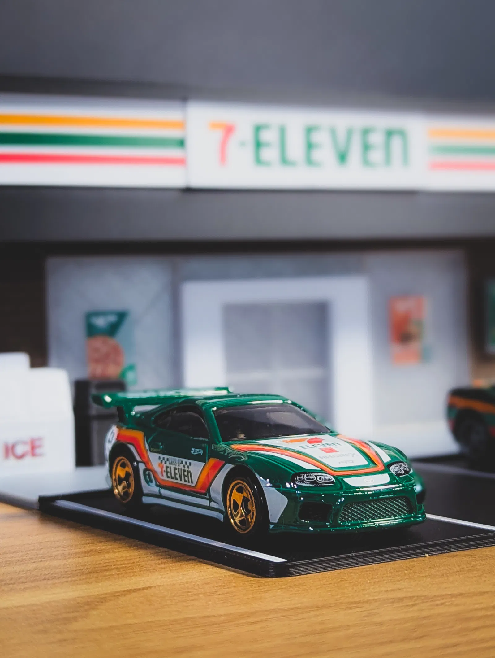 Gần đây, 7-Eleven và văn hóa xe hơi đã kết hợp sau khi đội ngũ truyền thông xã hội của 7-Eleven bắt đầu đăng ảnh xe hơi trước các cửa hàng 7-Eleven khác nhau. Xu hướng này ngày càng phát triển, với các buổi gặp gỡ xe hơi, sự kiện và chụp ảnh tại các cửa hàng để tôn vinh văn hóa và cộng đồng xe hơi. Gần đây nhất, 7-Eleven đã hợp tác với Hot Wheels cho màn kết hợp đỉnh cao, giới thiệu chiếc Toyota Supra với tông màu cổ điển và logo của 7-Eleven. Sau khi tìm kiếm nhiều cửa hàng, cuối cùng tôi cũng tìm thấy một cửa hàng có chiếc xe sưu tập này trong kho!