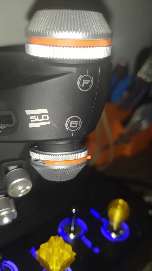Cả cái top hat switch ở trên cùng bên phải cũng vậy, nên mình làm mấy cái đế nâng cho nó cao hơn một chút, giờ thì mình bấm nút top hat switch với nút kia dễ dàng hơn hẳn.