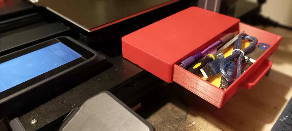 Bộ phận hộp đựng đồ cho máy in Elegoo Neptune 3 Plus, dự kiến tương thích với bản Pro và Max. Người dùng có thể thử nghiệm trên các máy in khác và chia sẻ kinh nghiệm trong phần bình luận. Nên in hai cái để gắn hai bên máy.