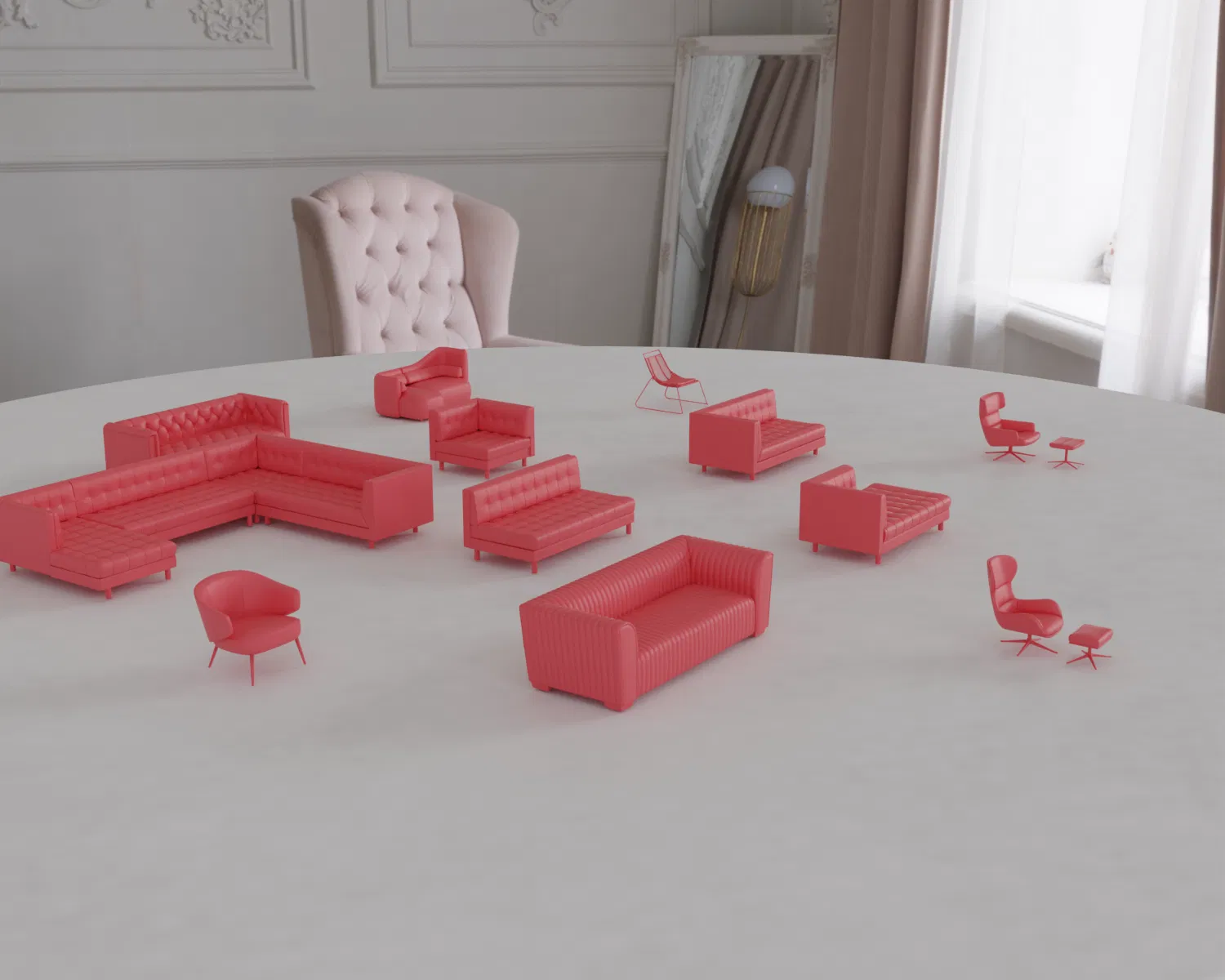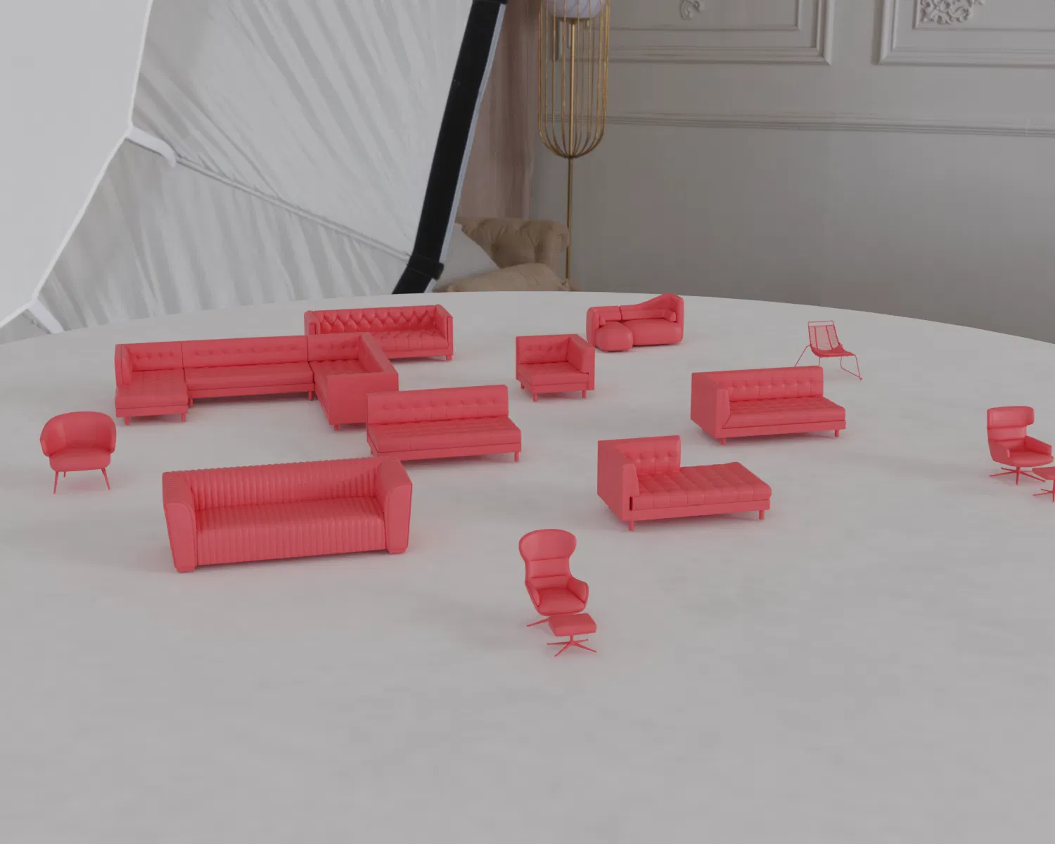Gói này bao gồm các mô hình chân thực lấy cảm hứng từ các thiết kế của Bernhardt và BoConcept, lý tưởng cho nhà búp bê,diorama, mô hình kiến trúc hoặc trưng bày bộ sưu tập.