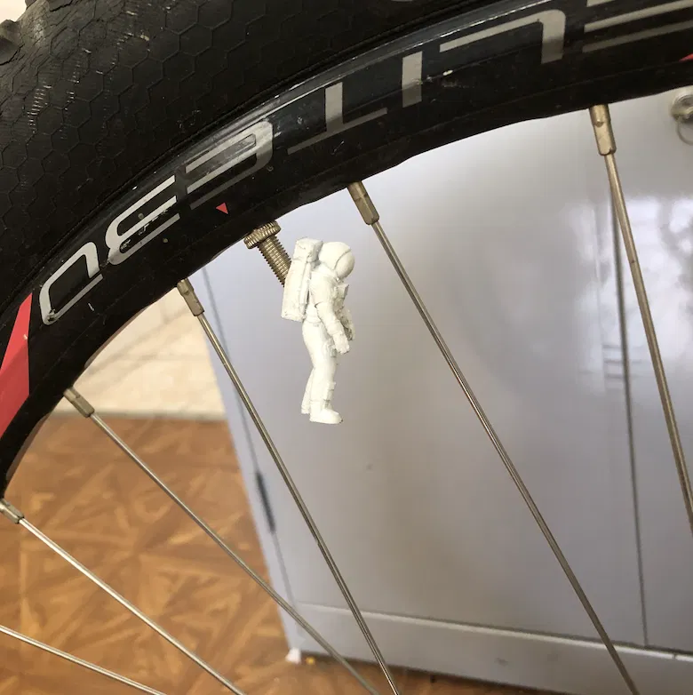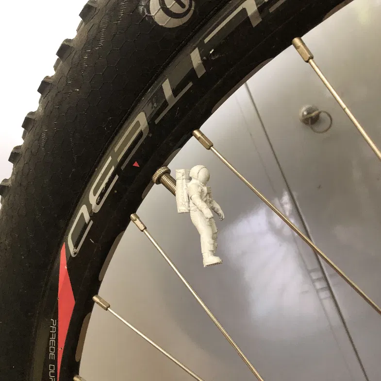 Chế tạo cho bánh trước để có thể bay mà không cần trọng lực khi đang chạy xe một bánh. Nắp van Presta hình phi hành gia Apollo sẽ giúp chiếc xe đạp của bạn như một con tàu vũ trụ.