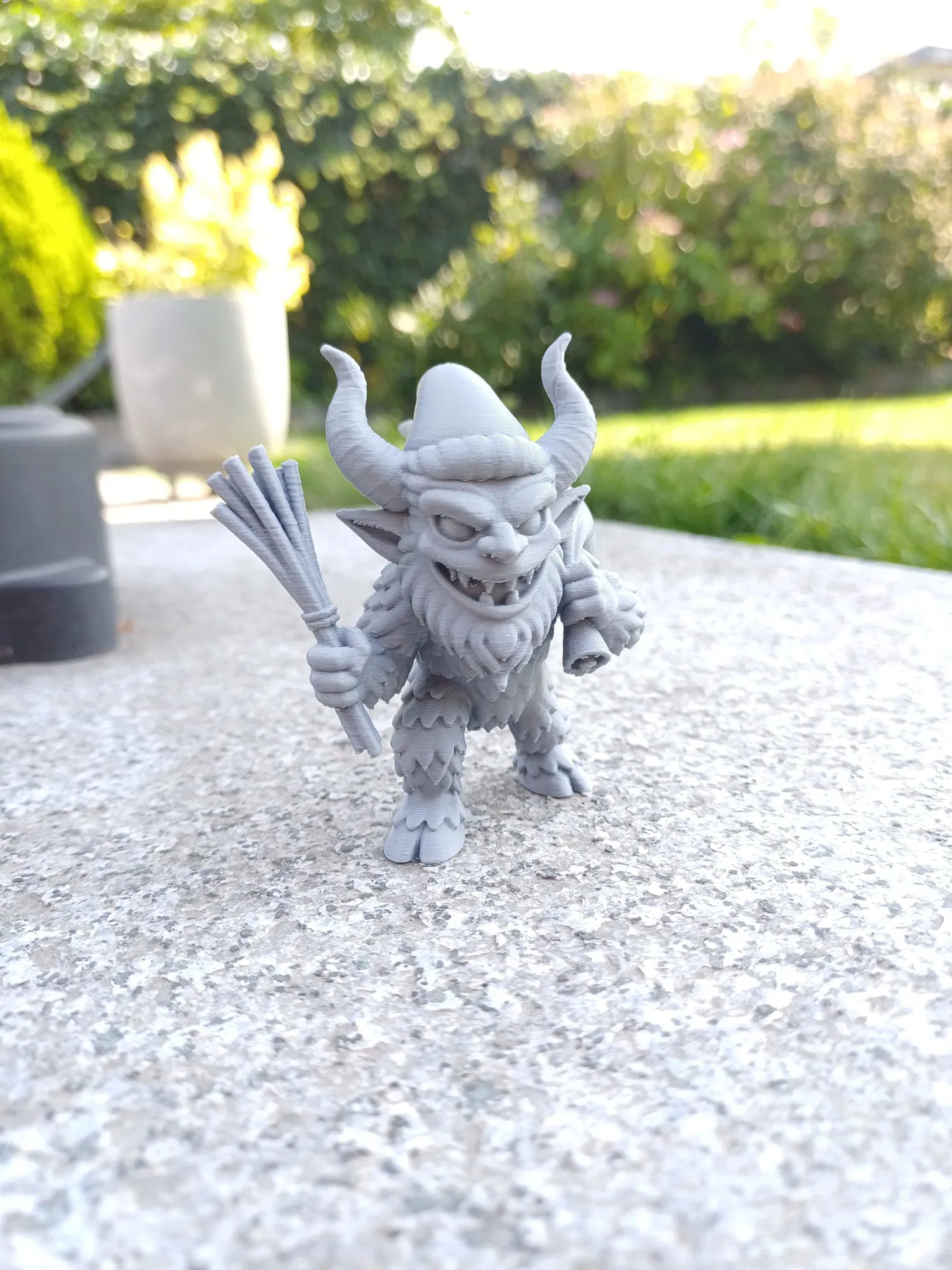 Một chú lùn tinh nghịch, mang chủ đề ngày lễ lấy cảm hứng từ văn hóa dân gian Alpine. Chú Krampus cách điệu này có sừng cong, mũ chóp nhọn, bộ đồ "lông" xù xì, một bó roi bạch dương và một túi phồng mang trên vai. Nhỏ gọn, đầy kết cấu và hoàn hảo cho kệ trang trí mùa Halloween hoặc các bức tranh ghép mùa đông.