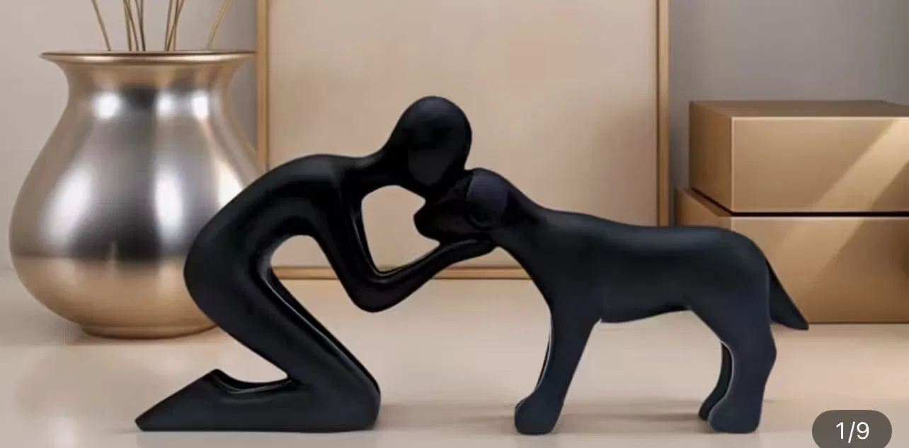 Mô hình tượng chó và người được tạo ra bằng công nghệ AI, thể hiện tình yêu và sự hòa quyện giữa con người và thiên nhiên. Một tác phẩm độc đáo mang đậm dấu ấn của trí tuệ nhân tạo.