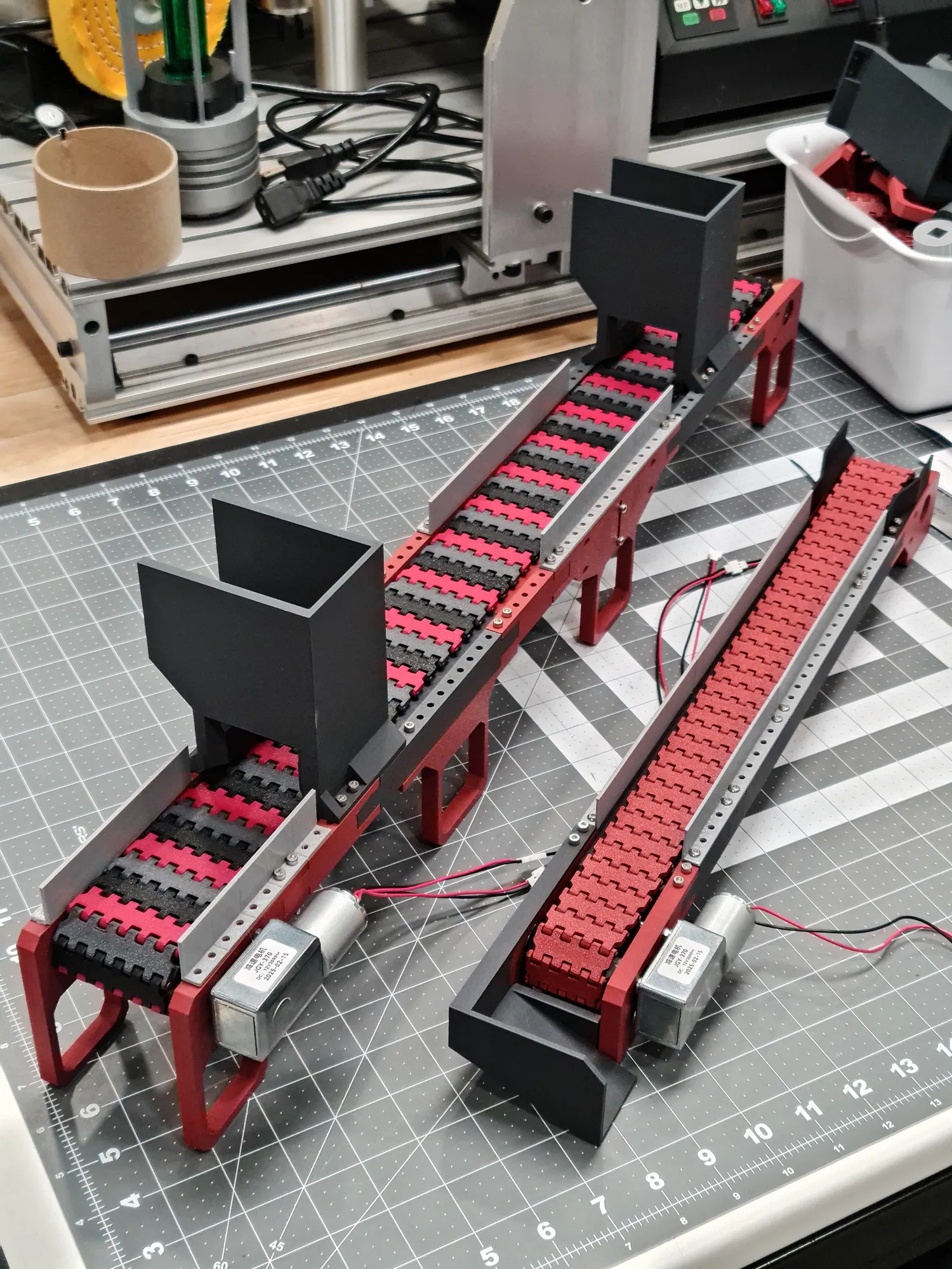 Đây là hệ thống băng tải chính của hệ thống vận chuyển phân Bambu Lab X1C của tôi. Thiết kế này giúp thu gom và vận chuyển phân đến một thùng chứa ở xa, giải quyết vấn đề khó tiếp cận thùng rác phía sau máy in.