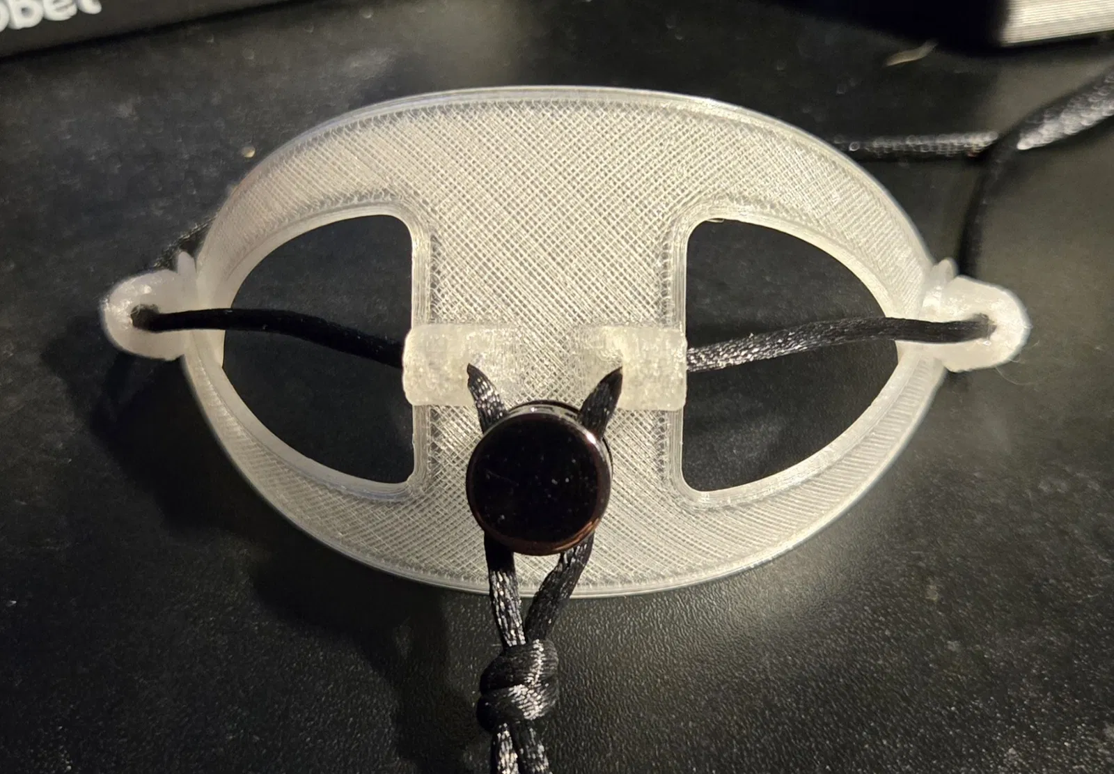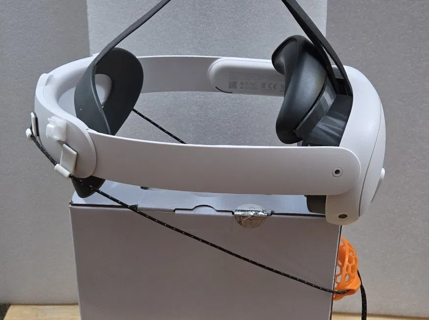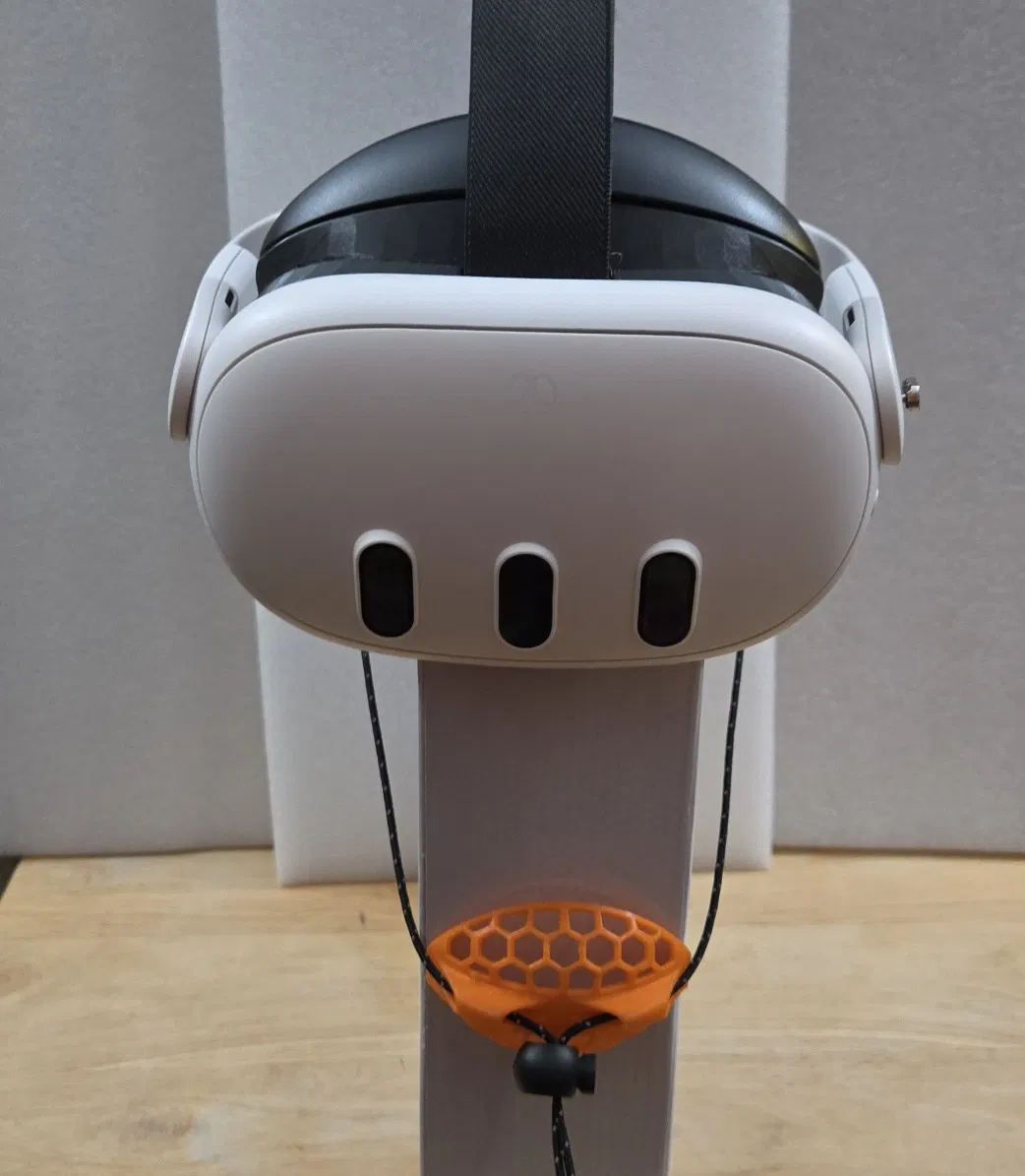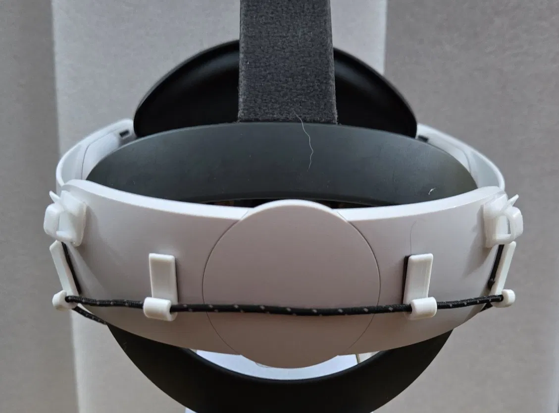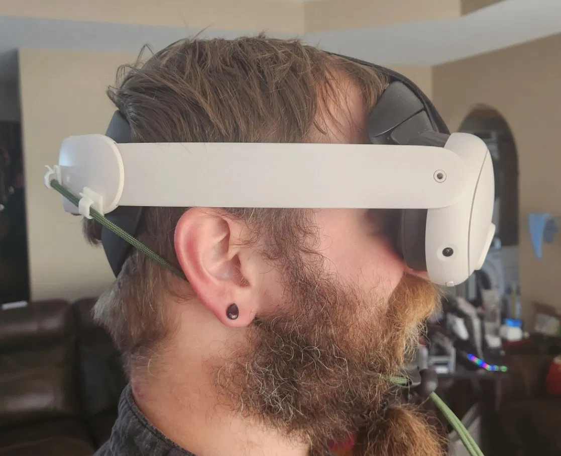Đây là một cái cốc dây đeo cằm đơn giản. Khi kết hợp với dây 2mm và một vài cái kẹp nhựa, nó giúp cho Quest có thể đeo cả ngày mà không bị nặng mặt.
