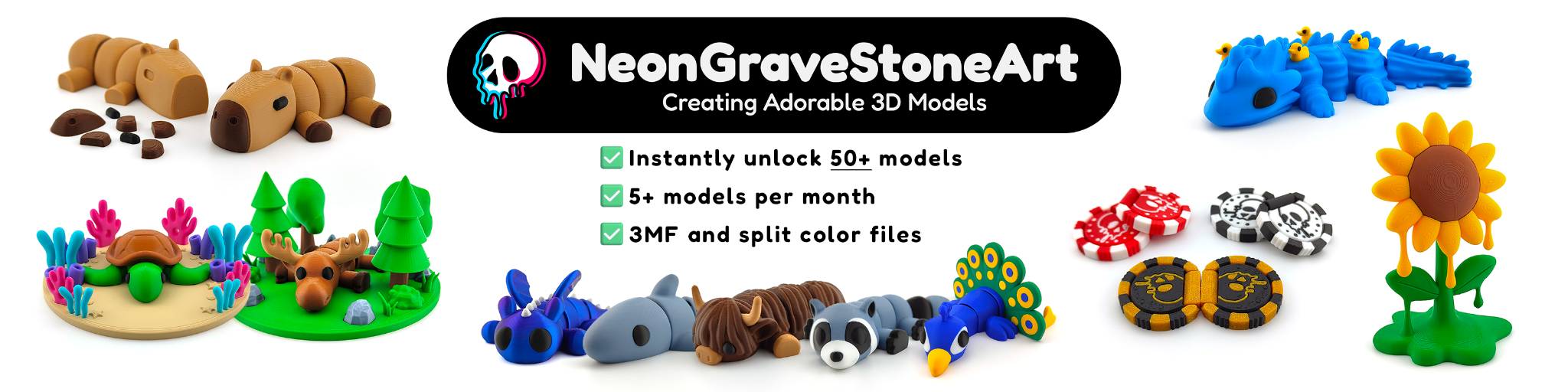 • File 3MF đa sắc cho hệ thống palette/AMS • File STL dễ tô màu với các bộ phận tách rời • Phiên bản móc khóa • File tách màu cho máy in đơn sắc muốn có kết quả đa sắc • Quyền bán các bản in của mô hình này • Truy cập hơn 60 mô hình khớp nối và trang trí khác
