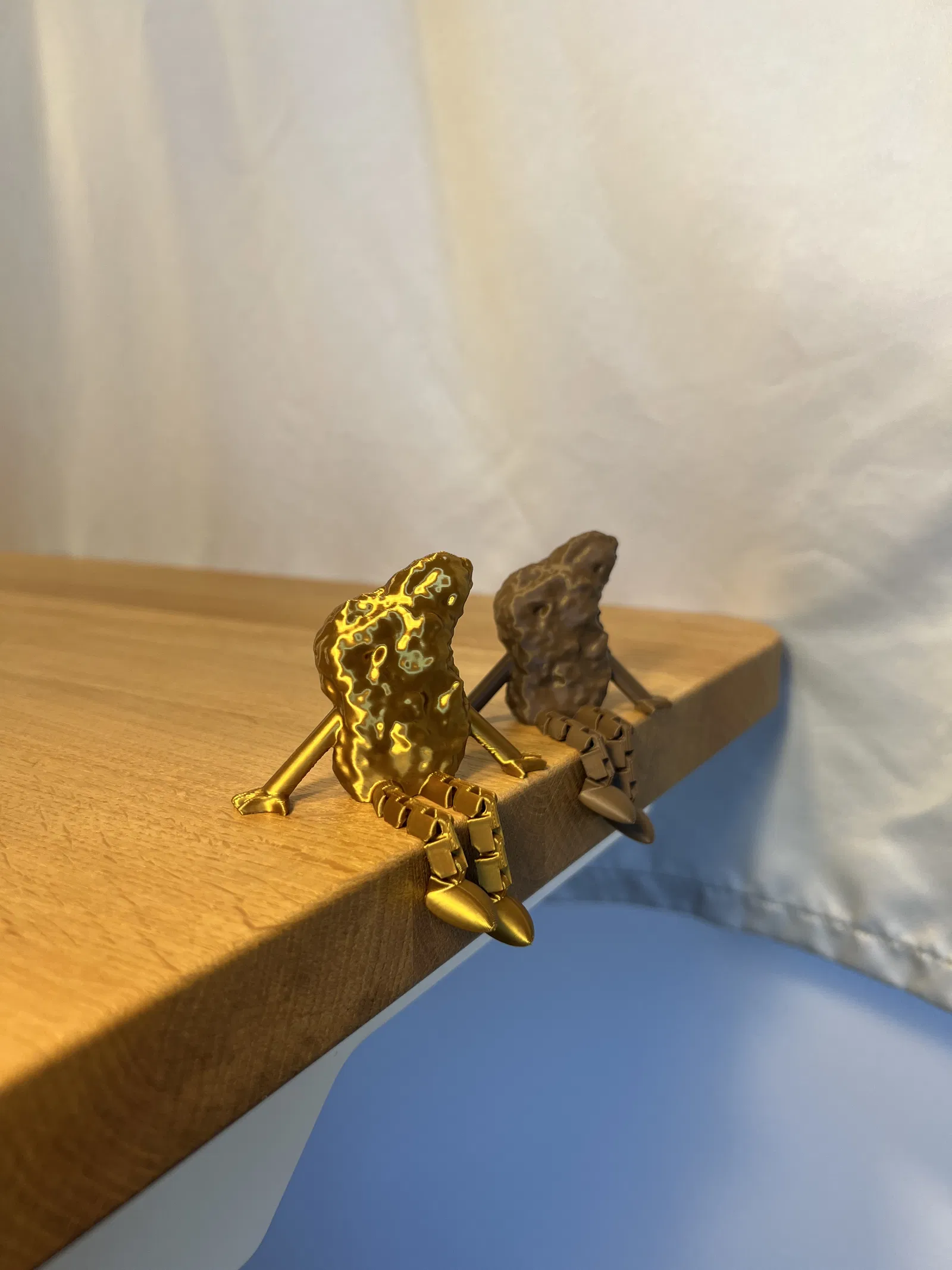 Mô hình khớp nối vui nhộn này lấy cảm hứng từ miếng gà "hình chiếc ủng" đặc trưng của một chuỗi thức ăn nhanh nổi tiếng. Nó có chân cử động và cánh tay nhỏ ngộ nghĩnh, làm cho nó trở thành một người bạn đồng hành hoàn hảo trên bàn làm việc hoặc một vật khơi gợi chuyện trò.
