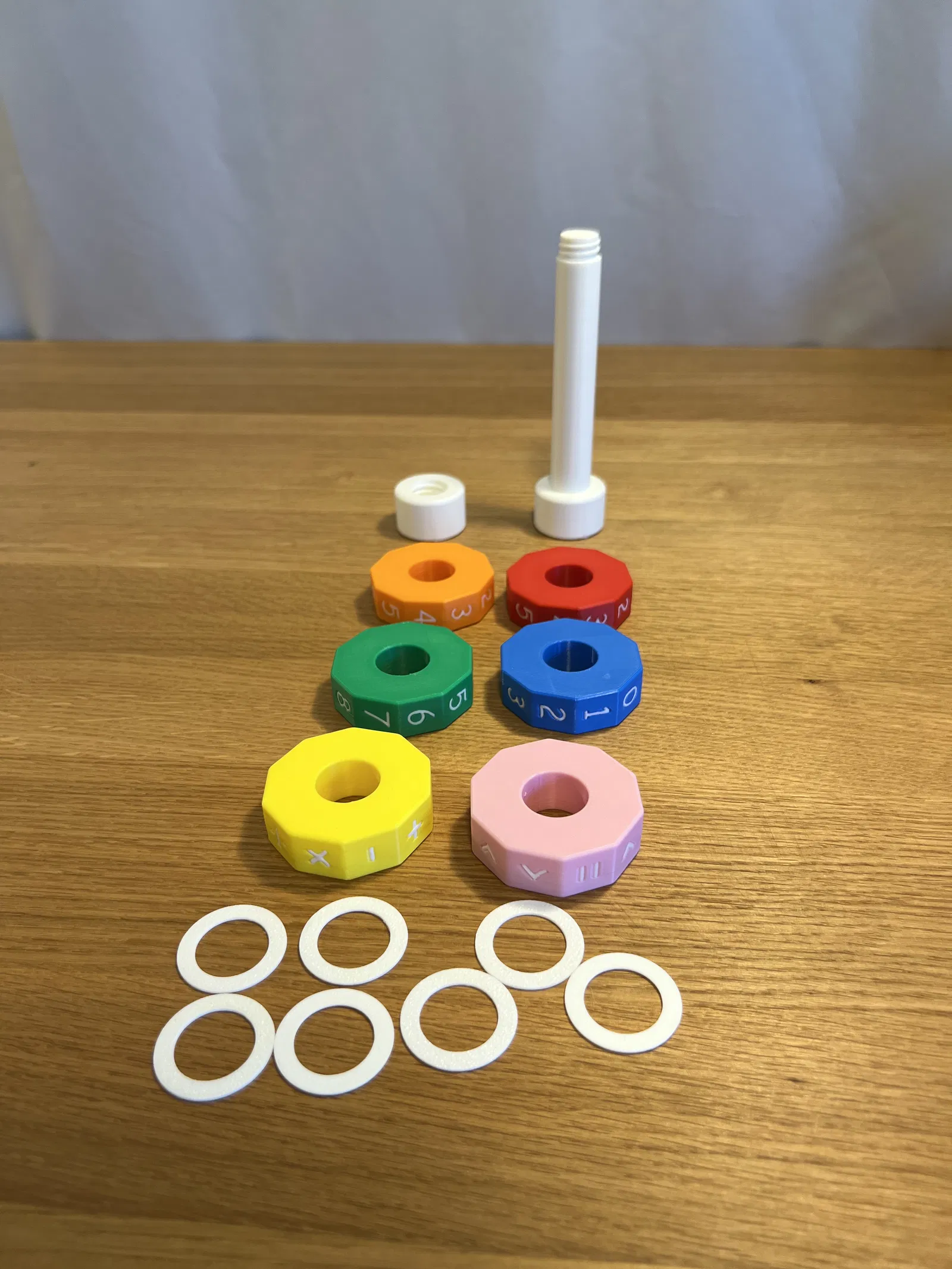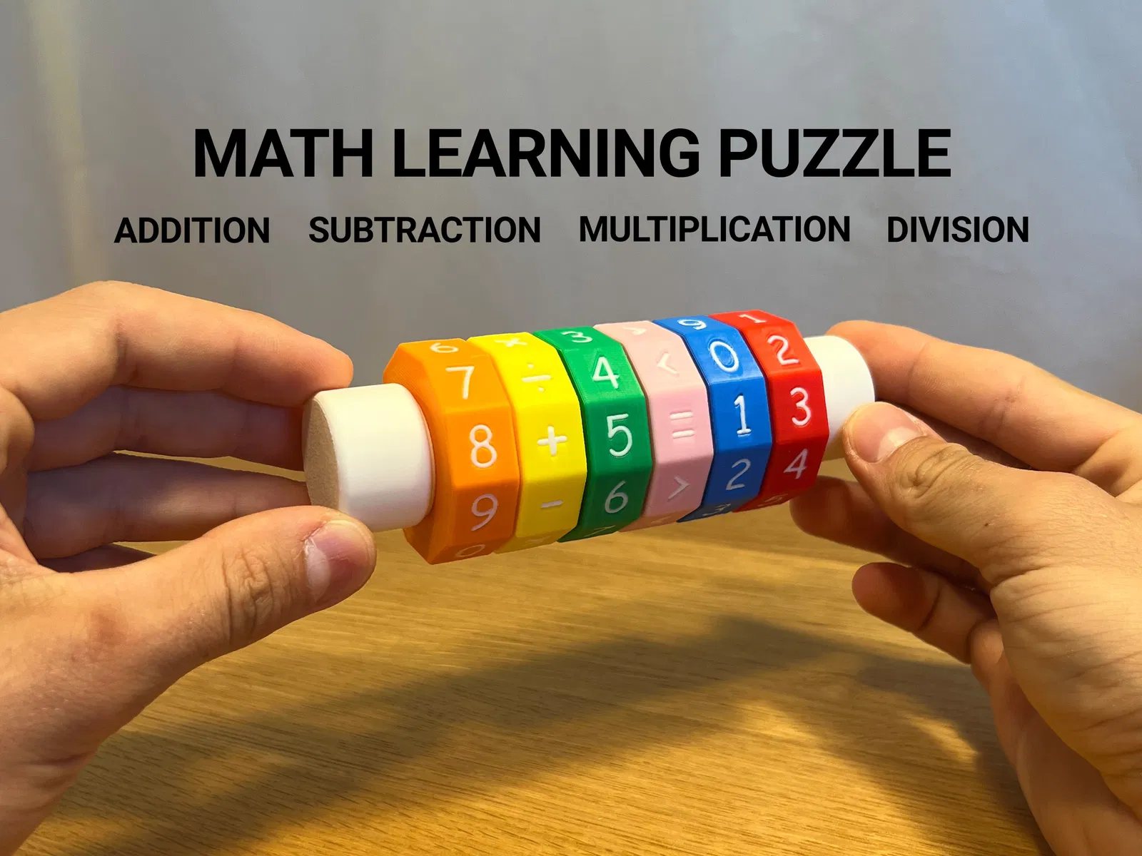Bộ xếp hình toán học dạng in được này giúp trẻ em luyện tập phép cộng, trừ, nhân, chia một cách vui nhộn và lôi cuốn. Chỉ cần xoay các vòng tròn để tạo ra các phép tính mới và giải chúng.