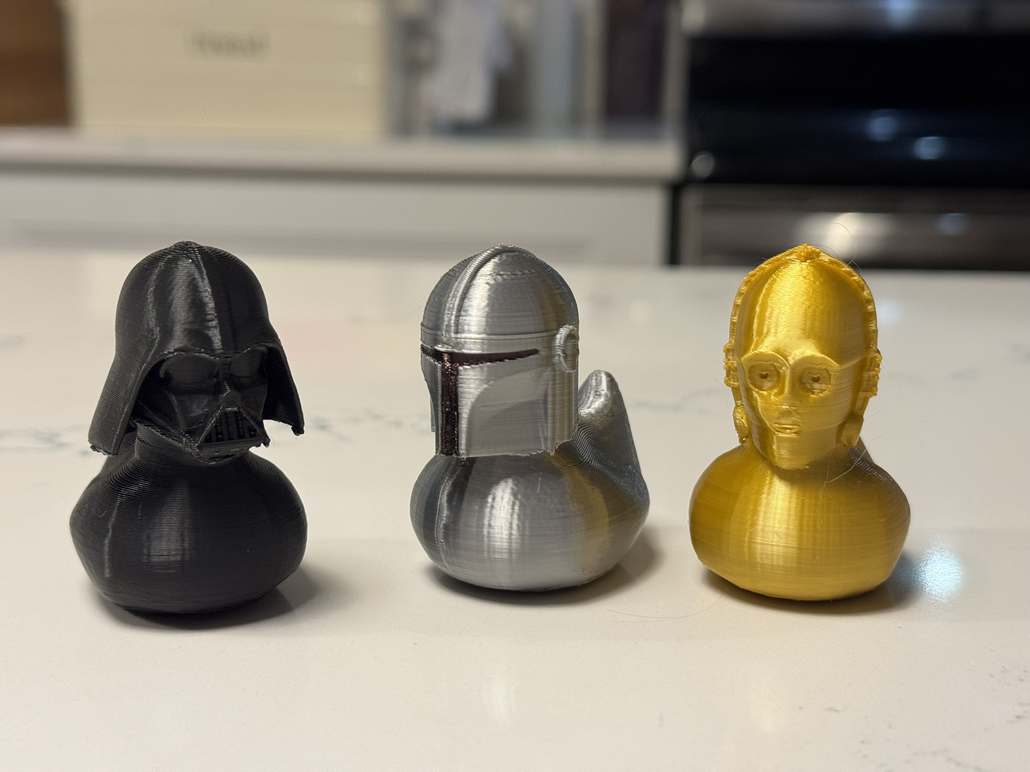 Bộ sưu tập Vịt Star Wars siêu cưng, bao gồm C3POduck, Manducklorian, Stormduck, Groguduck và Duck Vader. Thích hợp để in 3D và giấu trên tàu Disney Cruise, nhớ dùng tree supports cho bản in đẹp nha!