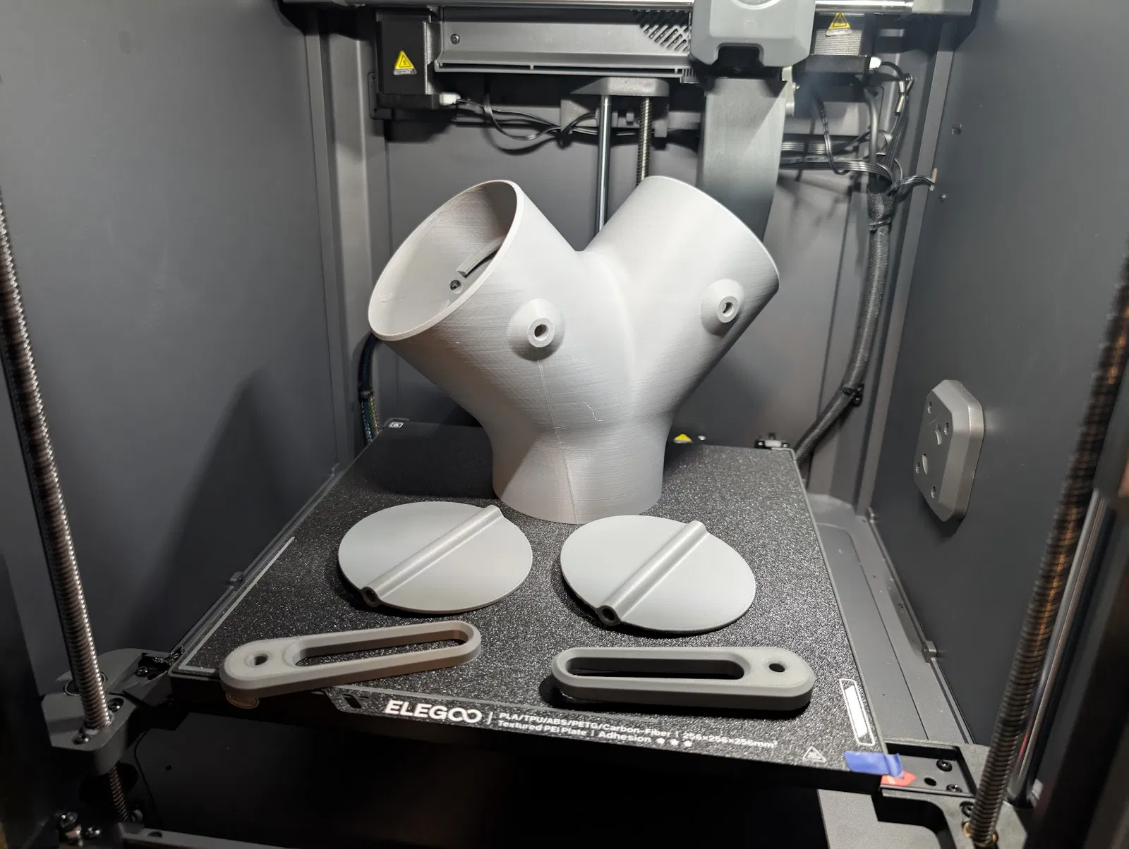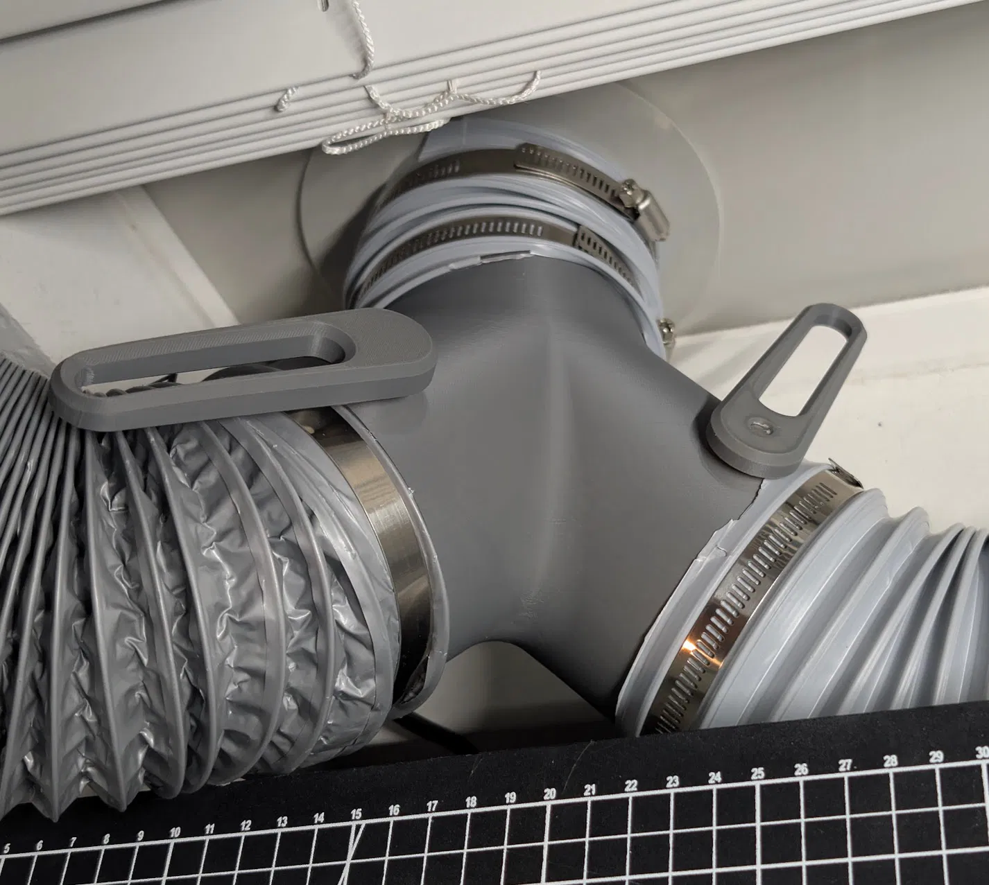 Ống thông gió cho máy Elegoo Centuari Carbon và phòng sơn của tui. Cần một giải pháp để chia quạt 4" inline cho cả hai, nên tui đã sửa lại thiết kế rất hay của @DOOM.