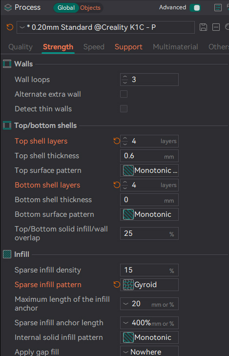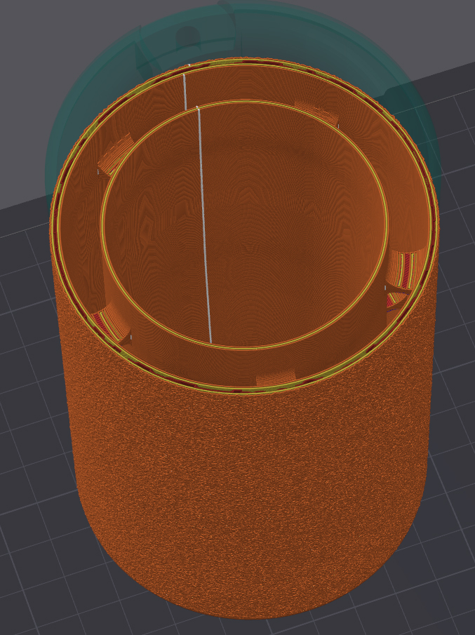 - Mình đã in phiên bản "_thinner wall" bằng các cài đặt dưới đây, tạo ra một khoảng hở nhỏ ở thành ngoài. Điều này có thể giúp cải thiện khả năng cách nhiệt.
