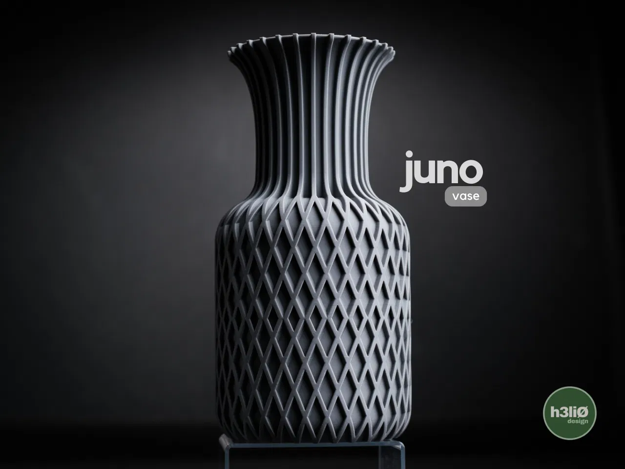 Bình hoa juno thiết kế tối giản hiện đại, kích thước 250mm và 175mm. Lưu ý cách in để chống nước và vật liệu phù hợp. Bao gồm file 3mf và STL.