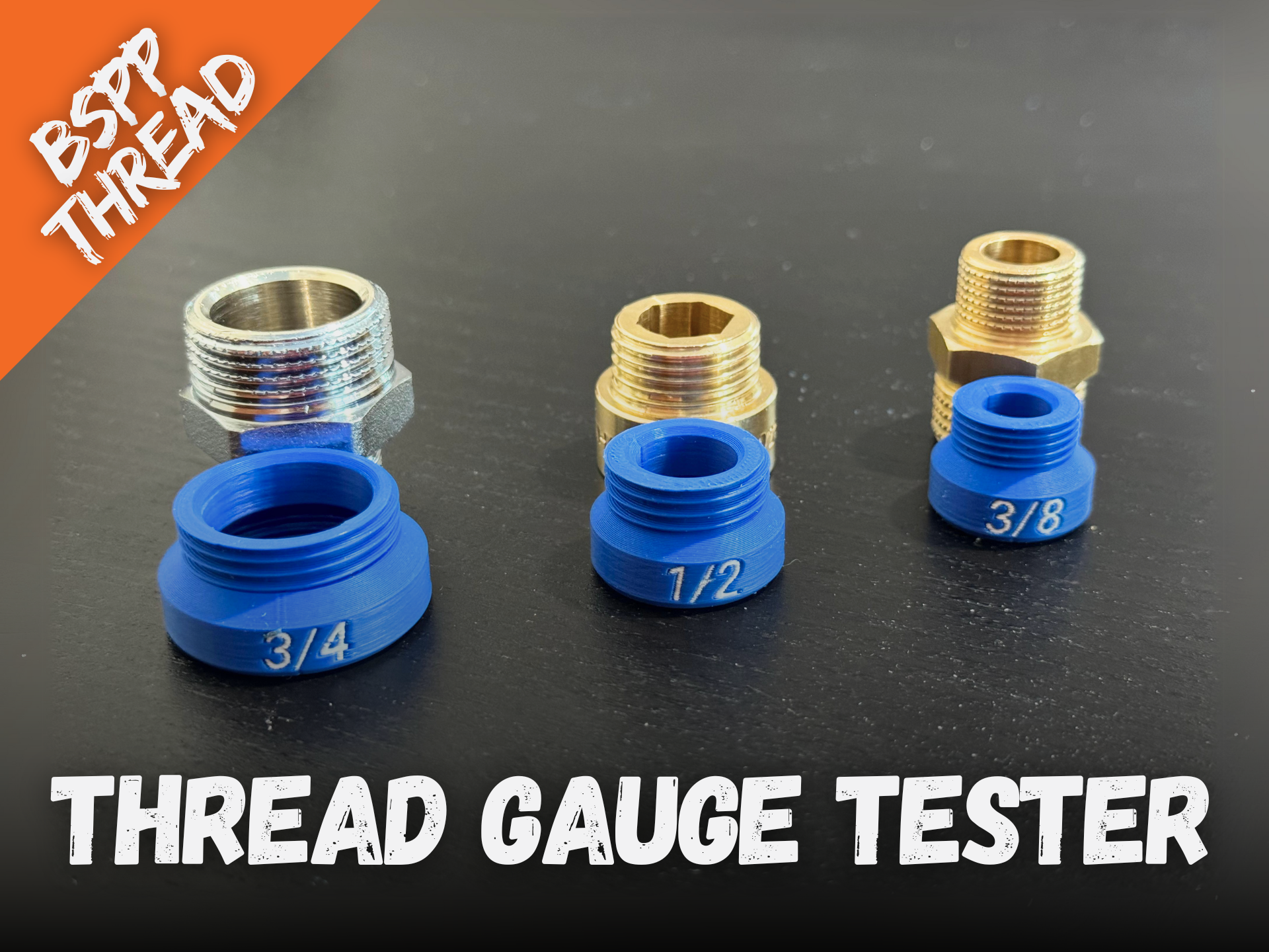 Công cụ thiết yếu để đo nhanh ren ống thủy lực, ngay cả ở những không gian chật hẹp. Bộ đo ren này bao gồm 5 kích thước BSPP tiêu chuẩn (1/8" đến 3/4") với cả ren đực và cái, dễ dàng sử dụng và in 3D với PLA hoặc PETG.