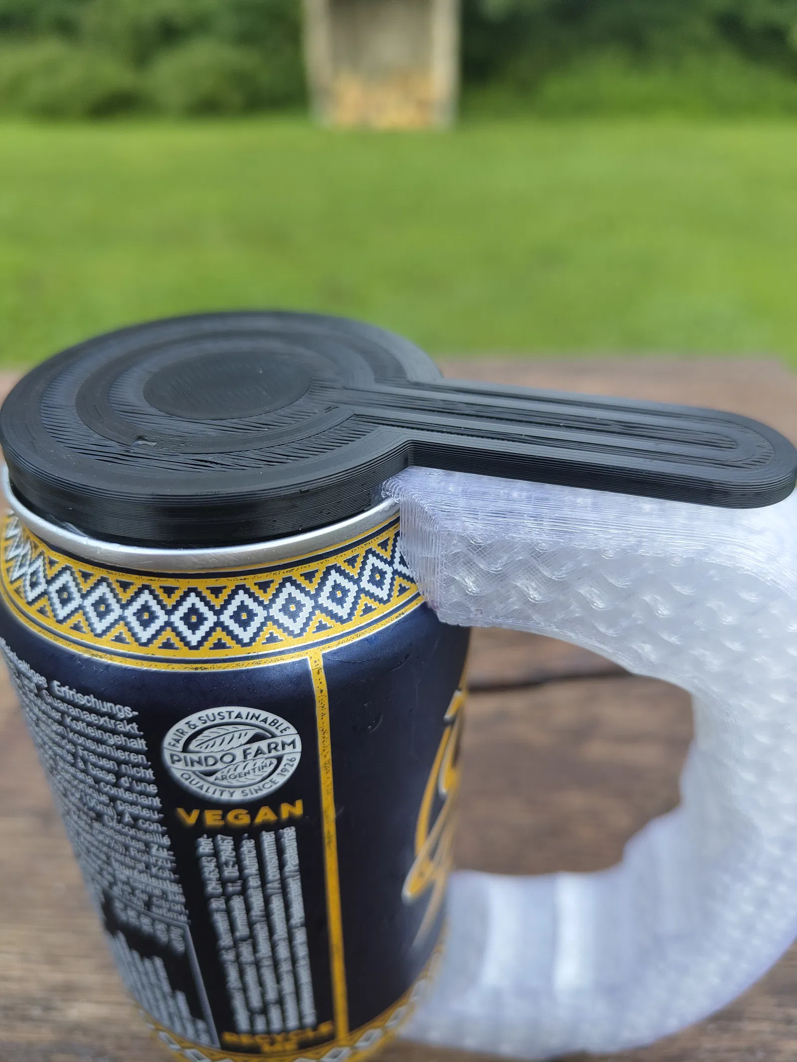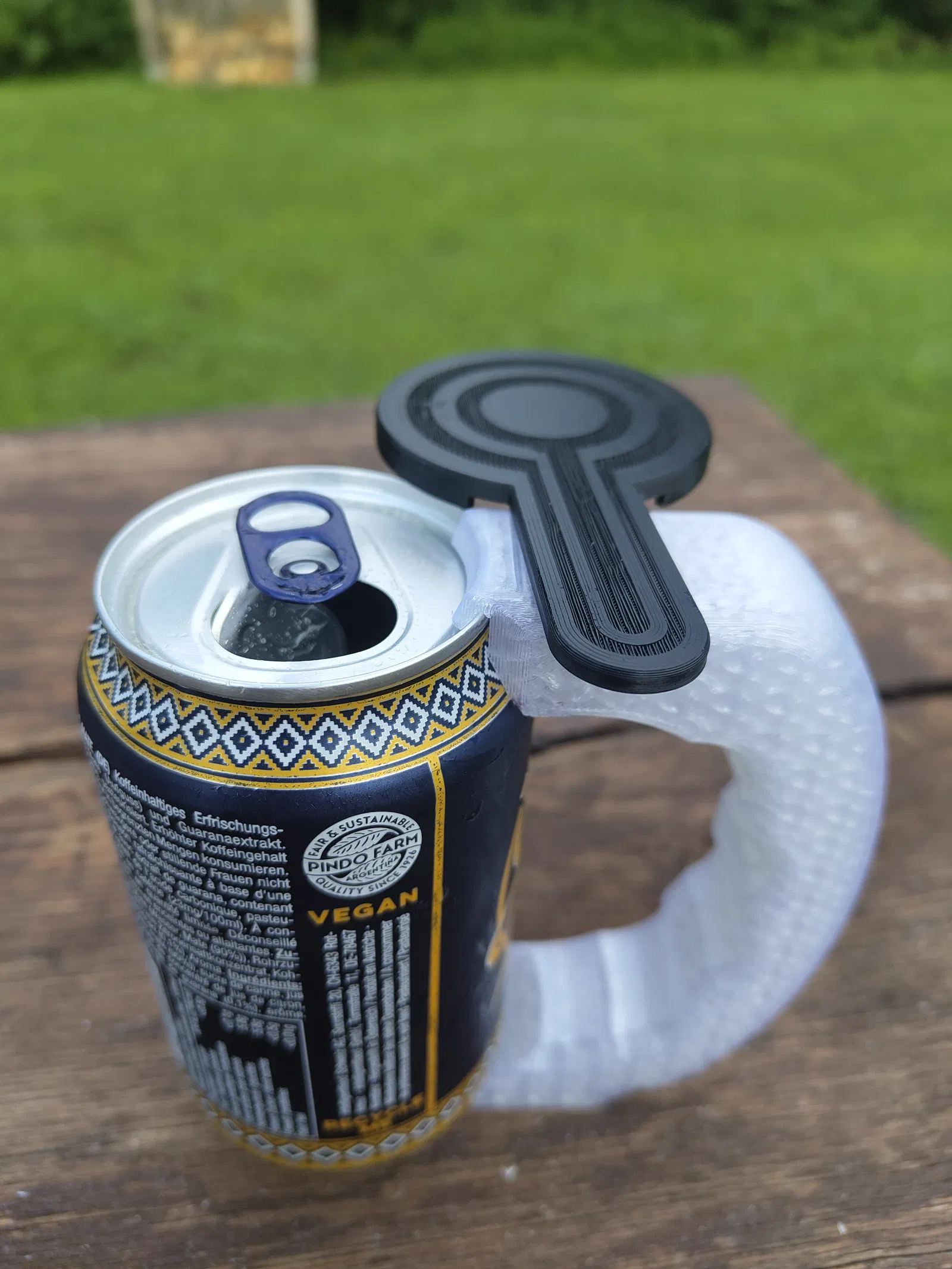 Một giá đỡ lon tối giản cho lon 330 ml tiêu chuẩn. Lon được đặt từ trên xuống và khớp vào vị trí ở dưới đáy; việc tháo ra cũng làm ngược lại. Giá đỡ giữ lon bằng chính hình dạng của nó. Nắp xoay bảo vệ miệng lon khỏi côn trùng và bụi bẩn – lý tưởng cho việc sử dụng ngoài trời vào mùa hè. Mô hình này nhẹ, hoạt động tốt và cần có vật liệu hỗ trợ khi in.