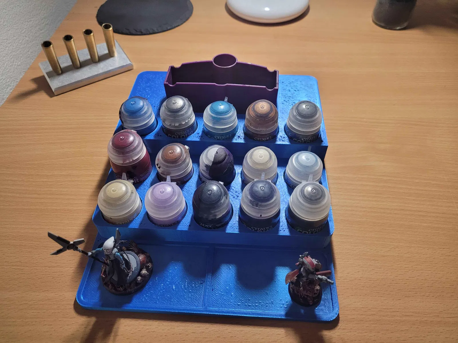 Giá đỡ này giúp bạn sắp xếp các loại sơn Warhammer 40K một cách gọn gàng. Ngoài ra còn có chỗ để cọ vẽ và nước. In bằng vật liệu bạn thích, nếu không gian in bị hạn chế, hãy cắt nhỏ và đừng scale.