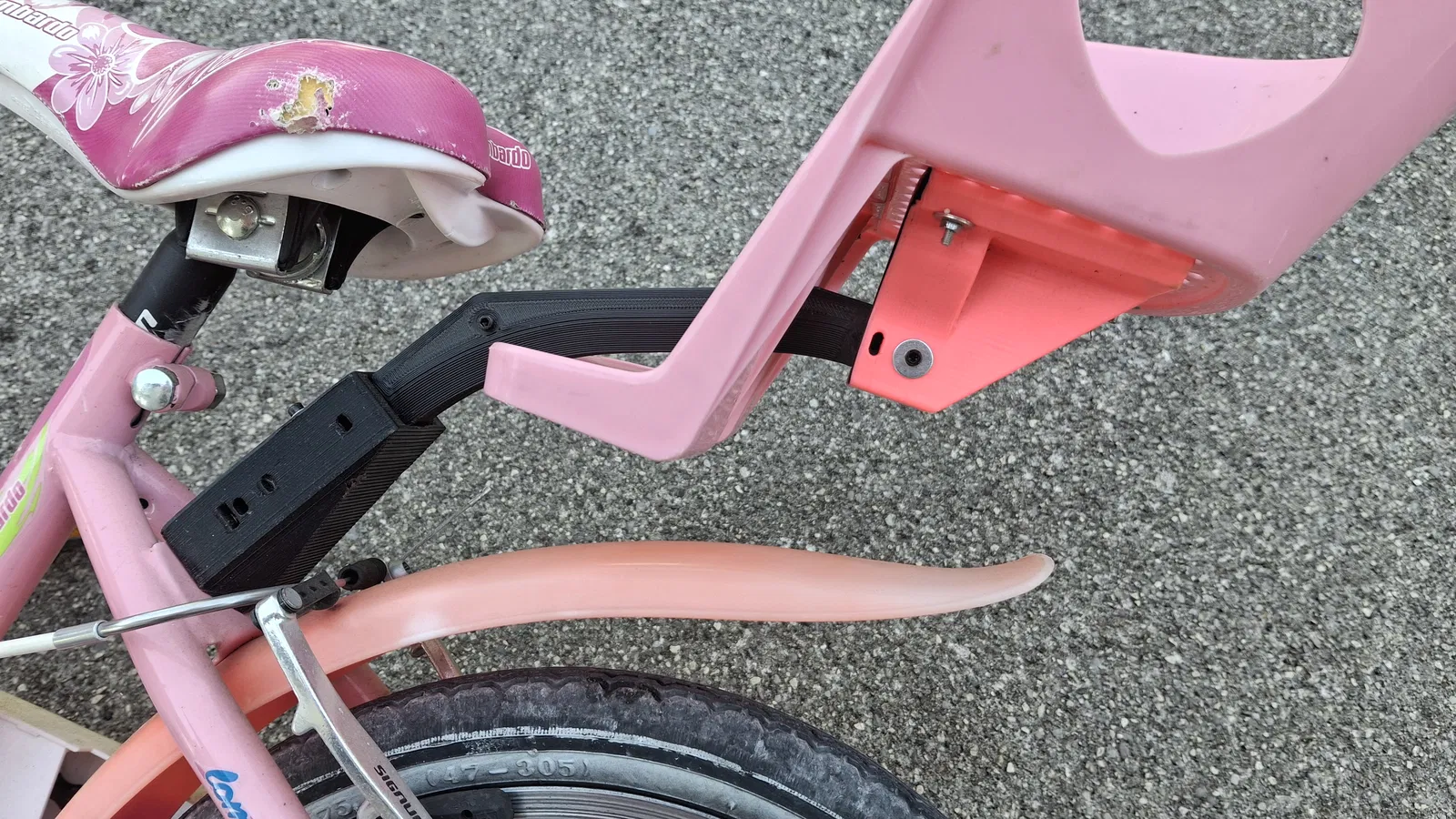 Giá đỡ console đơn giản để gắn thêm yên xe búp bê vào phía sau xe đạp của bé. Vật liệu PLA/PETG đều dùng tốt, nên để 4-5 lớp vách và dùng ốc tự tạo ren M3x20.