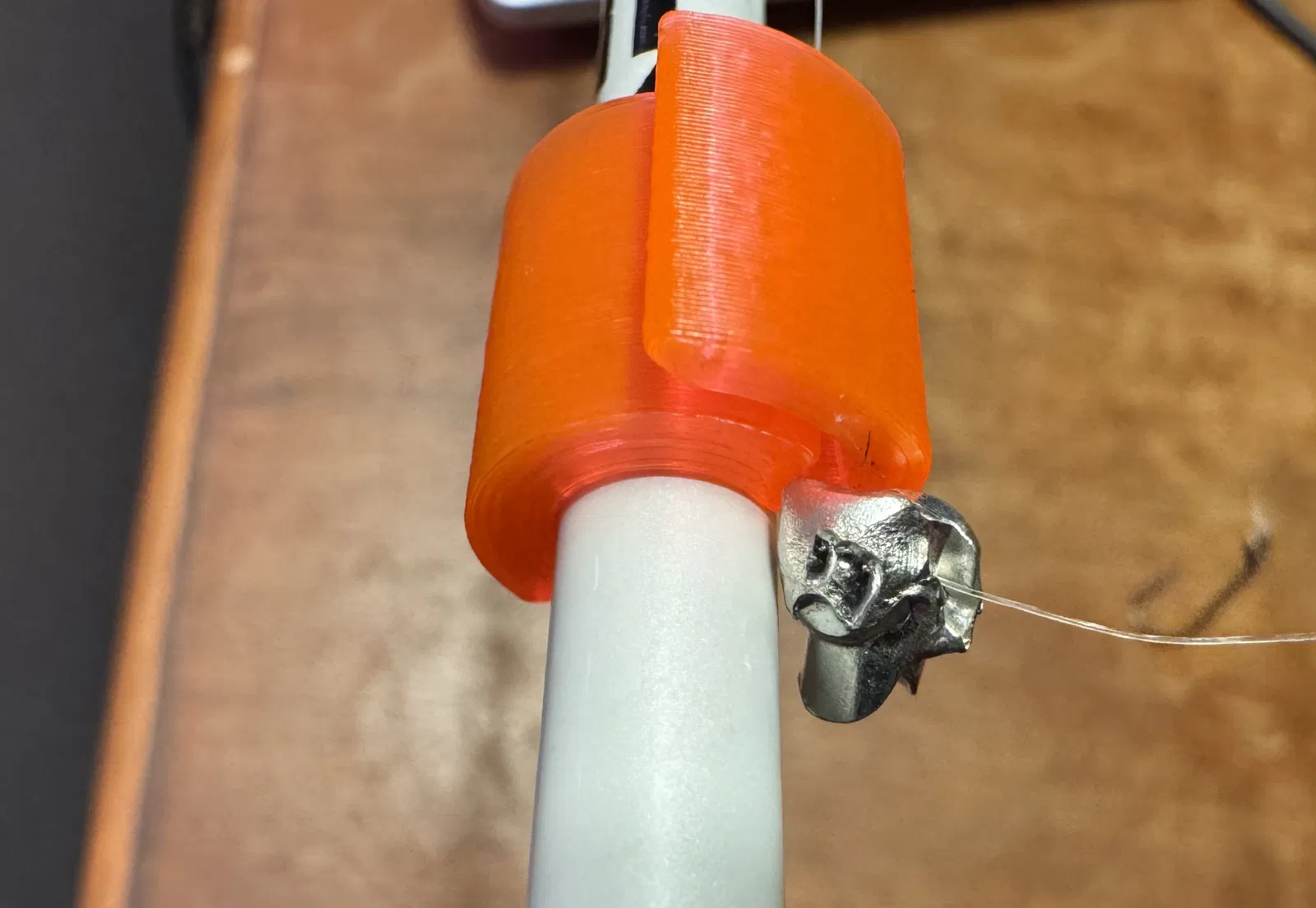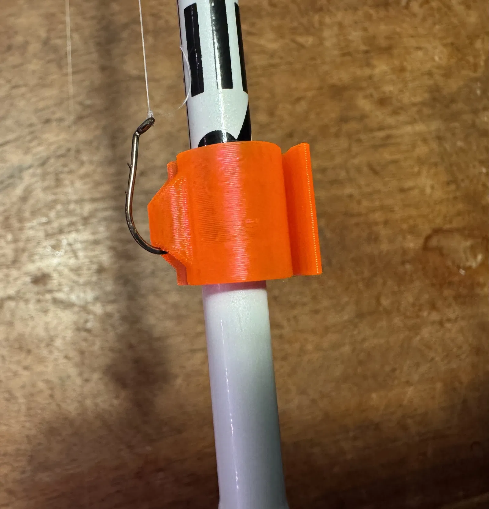 Mình làm cái này sau khi tìm hoài không thấy cái nào đủ nhỏ để gắn vừa cây cần câu cá hồi của mình. Tìm không có, nên mình tự làm một cái giữ lưỡi câu có thể tùy chỉnh kích thước, và mình có để kèm theo các phiên bản với kích thước từ 5mm đến 18mm. Cái nhỏ nhất mình xài là 6mm, gắn vừa khít cây cần St. Croix Triumph 5'0