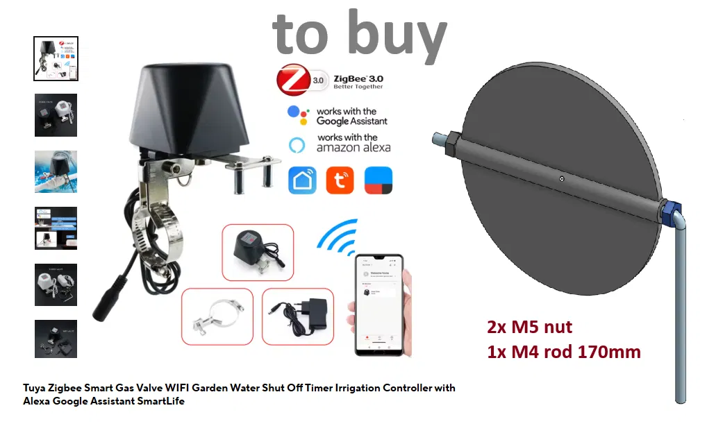 Mô hình này mô tả cách mở và đóng lỗ thoát khí 100mm bằng van thông minh. Cần mua kèm van thông minh, thanh ren M4 dài 170mm và 2 đai ốc M5 để lắp ráp.