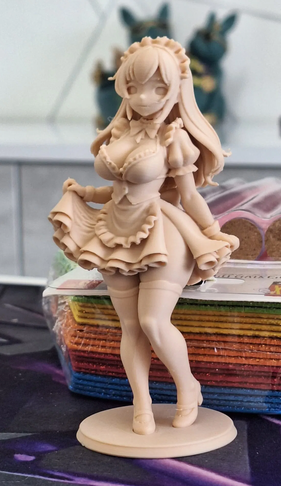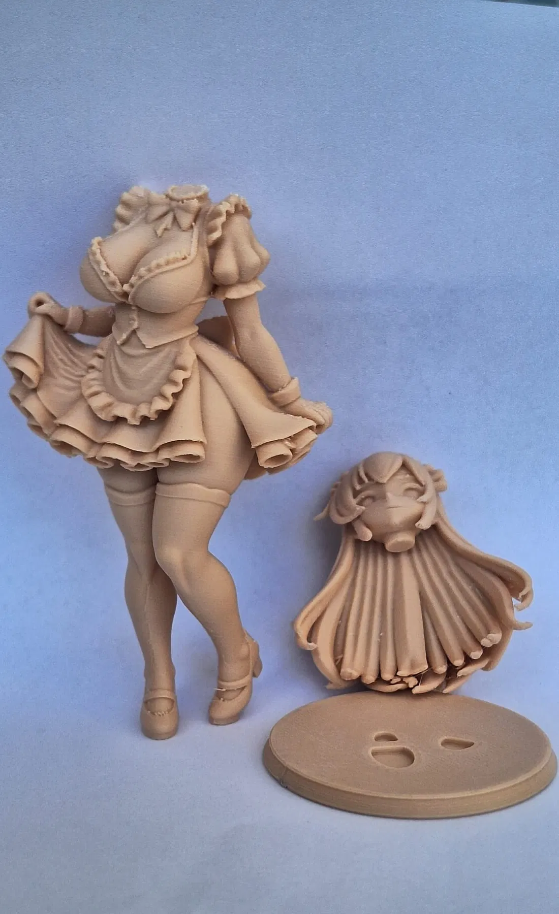 Cẩn thận nha! Mô hình đầy đủ gồm 3 phần: đầu, thân và đế của cô gái Anime. Tách các bộ phận ra trước khi in. Việc in không hề đơn giản.