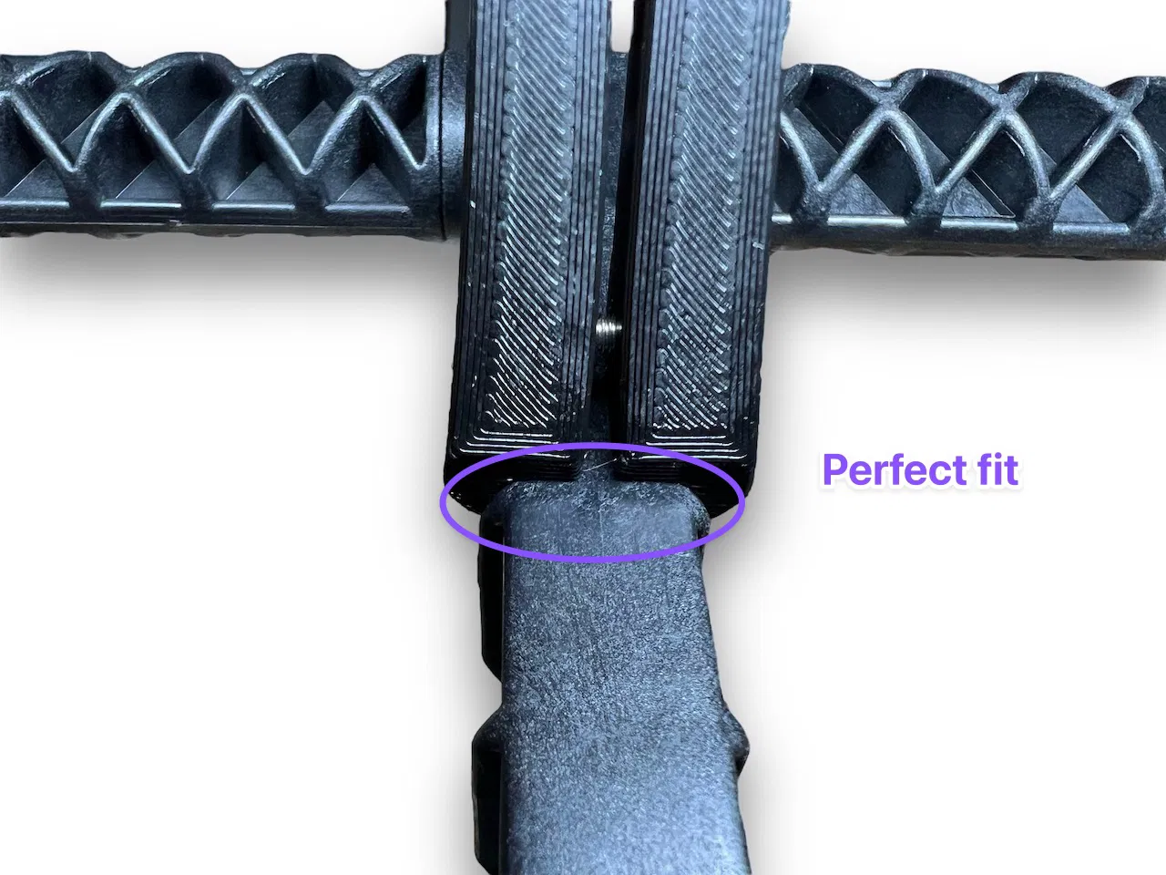 Do cái hướng dẫn luồn dây sợi nhựa mặc định không vừa, nên đã được chỉnh sửa lại cho khớp hoàn hảo. Phiên bản này đã khoét bớt một chút để nó vừa vặn với khung cuộn dây sợi nhựa hơn.