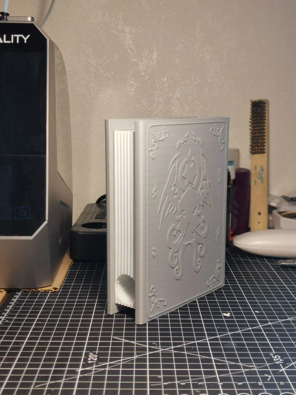 Tháp xúc xắc hình cuốn sách trông như một cuốn sách cũ dày cộp. Thả một viên d20 vào lỗ trên cùng, nghe tiếng lạch cạch, và cất bộ xúc xắc của bạn vào ngăn chứa đồ tích hợp khi xong việc. In ra làm hai phần: Vỏ ngoài (bìa sách) và Phần bên trong (khung tháp có các đường dẫn). Phần vỏ ngoài có một khoang định hình để phần bên trong nằm gọn và chắc chắn. Tất cả các file STL đều đã được định hướng sẵn, bạn chỉ cần cắt và in thôi.