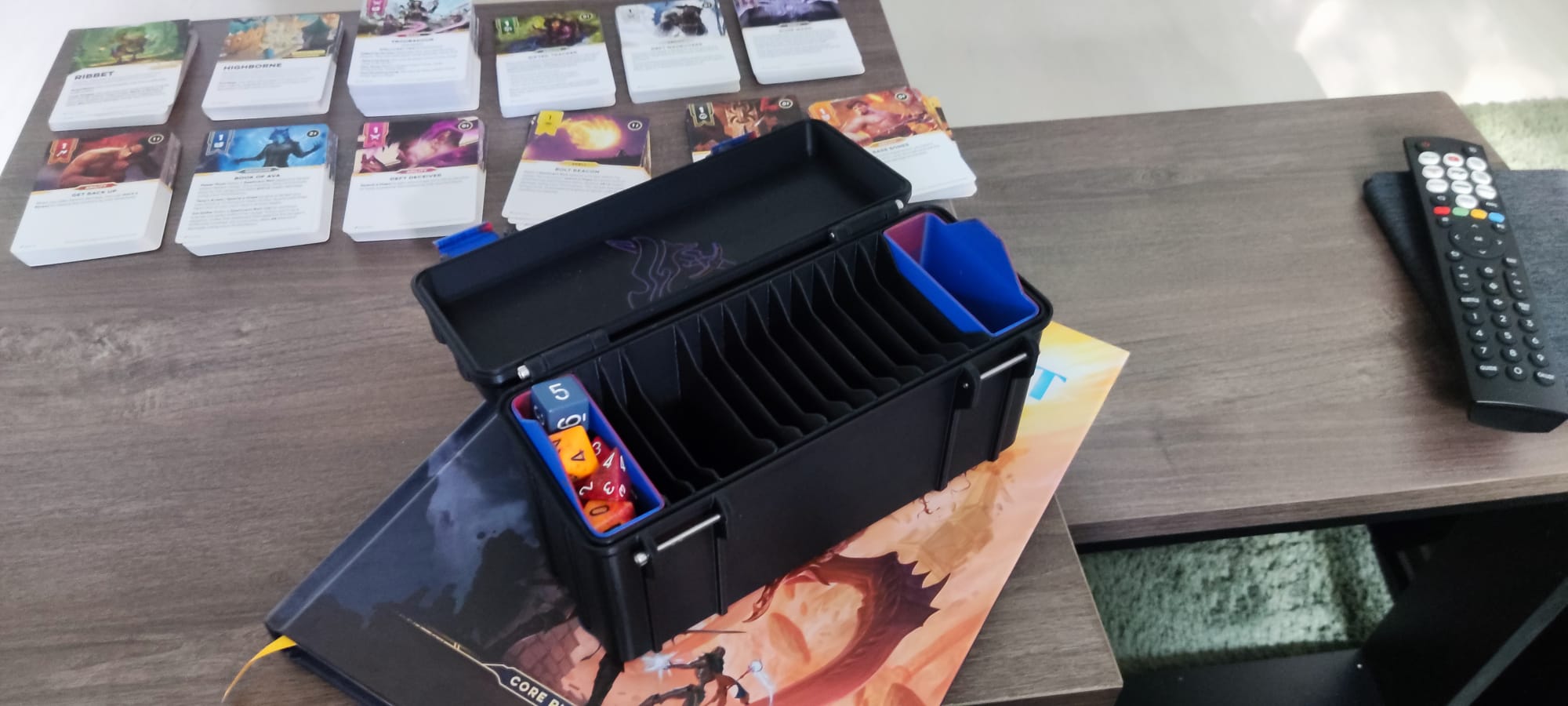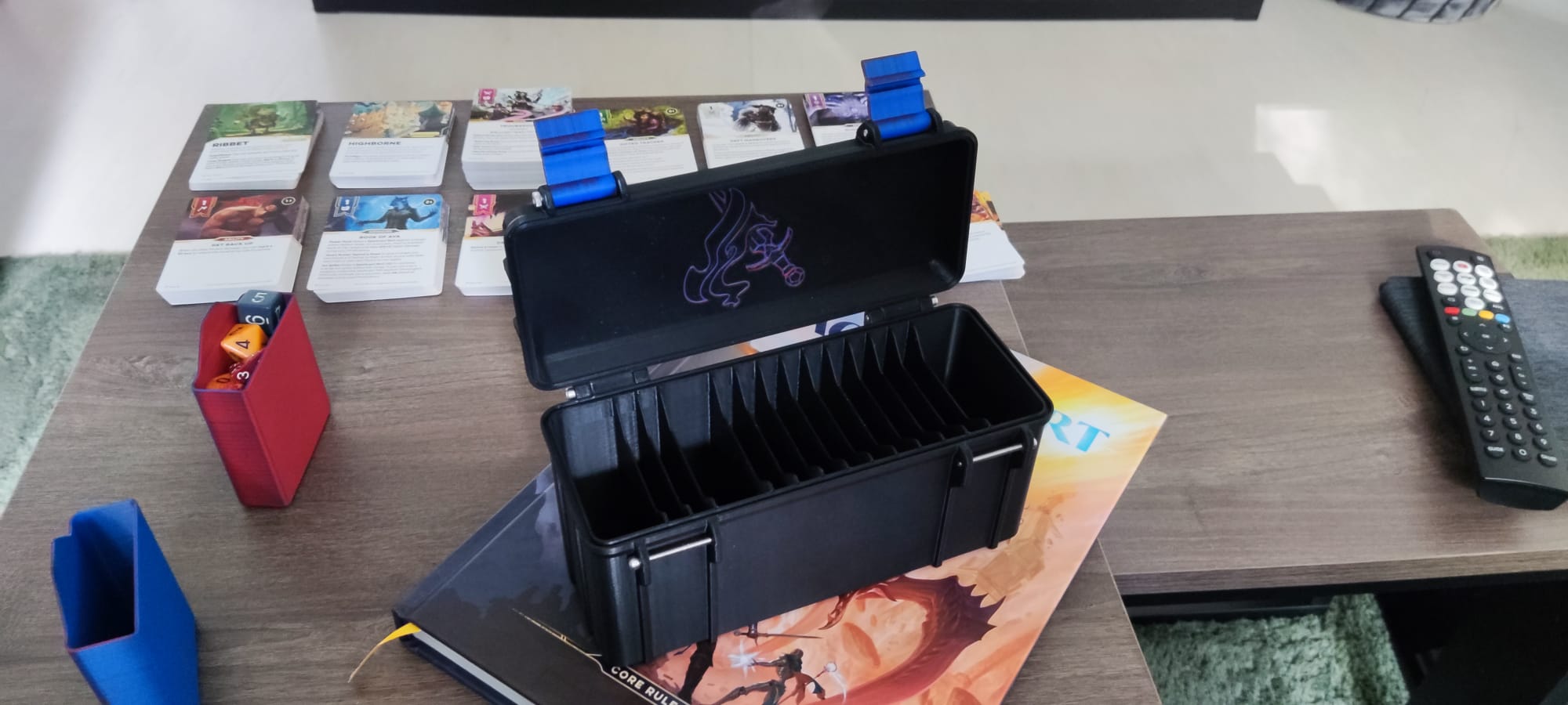 Chiếc hộp có các ngăn riêng biệt cho các lá bài Ancestry-, Community-, Class- và Domain-Cards. Ngoài ra còn có hai khay đựng xúc xắc (Dice) và các vật phẩm (Tokens) cũng được bao gồm.
