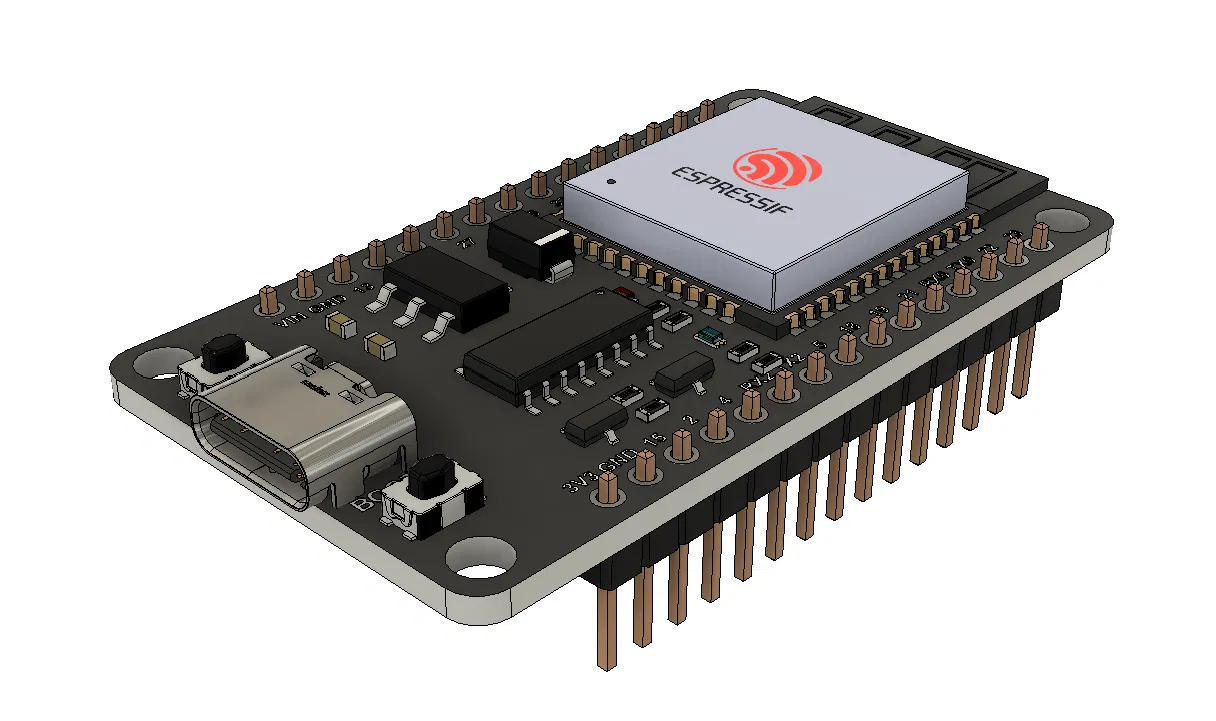Bảng mạch ESP32 DEVKIT V1 30 PIN với các tùy chọn định dạng file STEP và F3D. Mô hình có thể tùy chỉnh với cổng USB C hoặc Micro USB B, và có hoặc không có chân cắm.