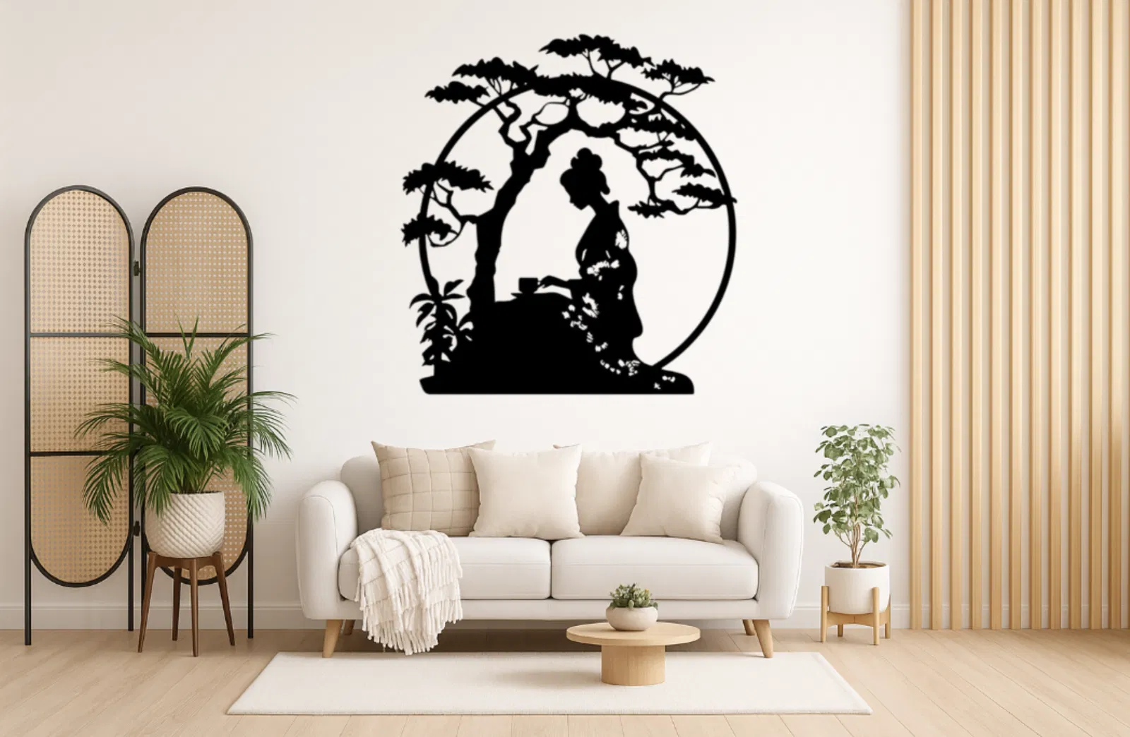 Tranh Treo Tường 3D Cô Gái Nhật Bản Bonsai
