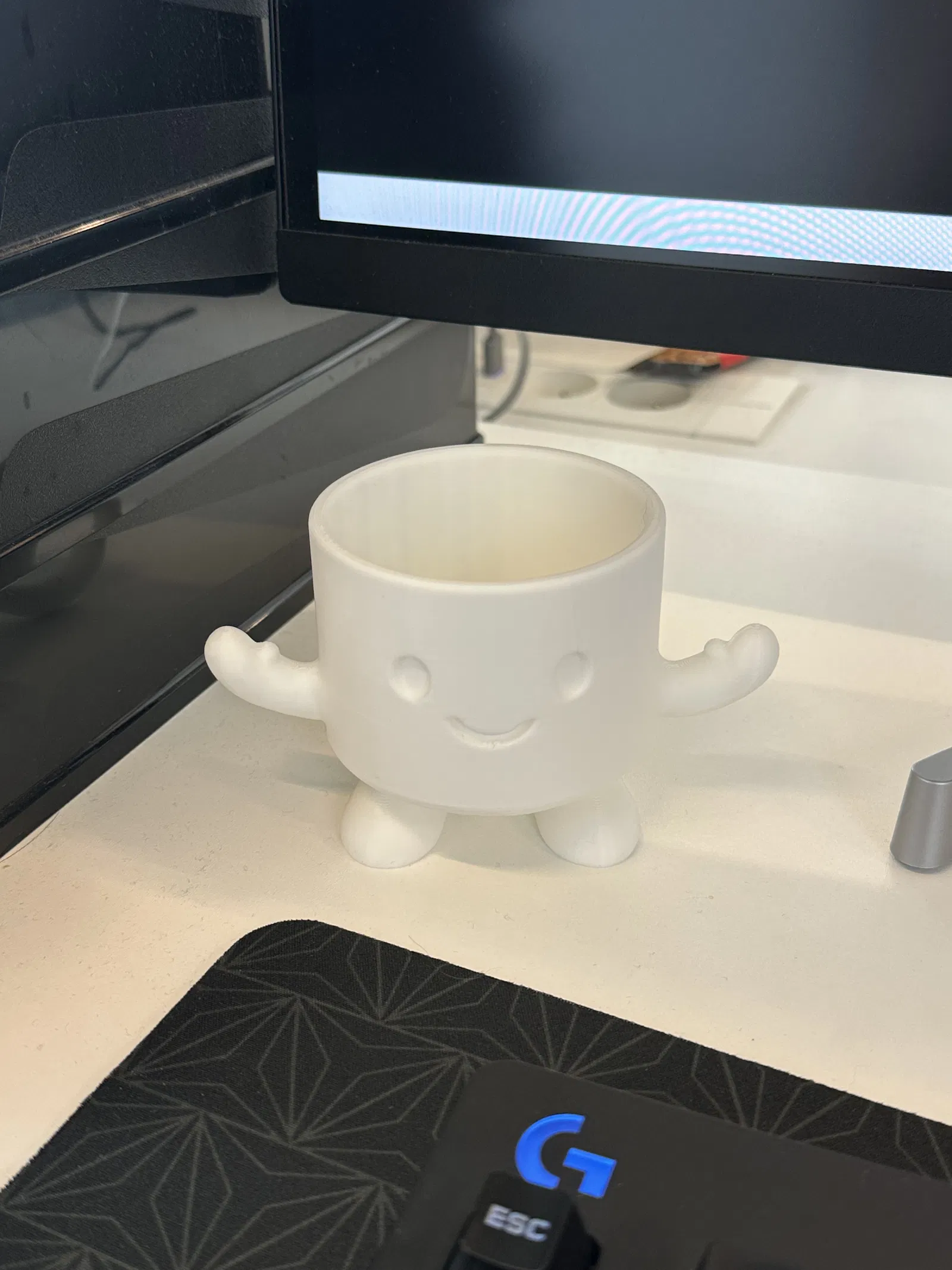 Desk Buddy là phụ kiện để bàn in 3D, vừa giữ lon nước ngọt 330ml, vừa làm giá đỡ bút. Có nhiều biểu cảm vui nhộn, tay cầm tiện lợi và thiết kế chắc chắn. Món quà độc đáo cho bàn làm việc.