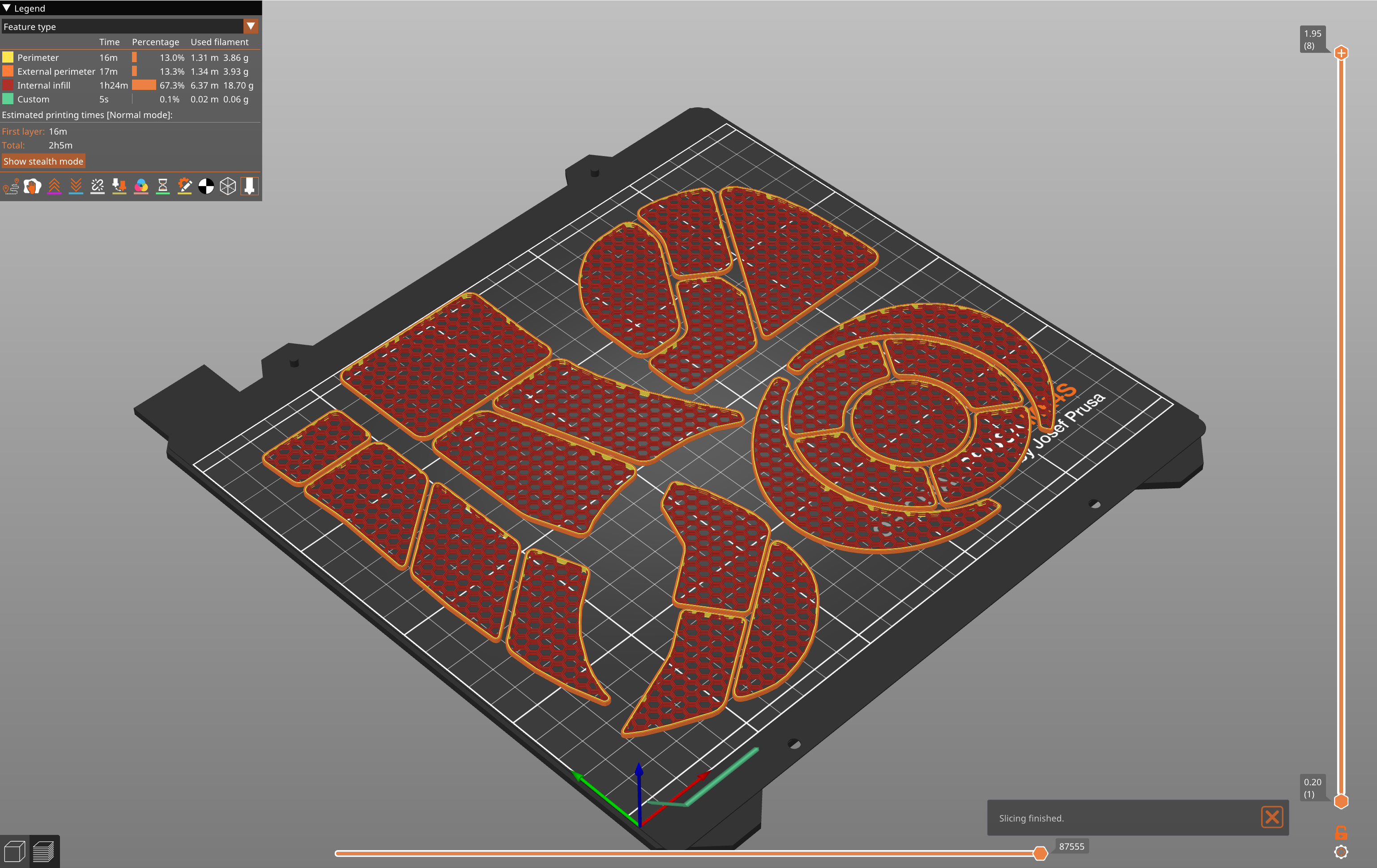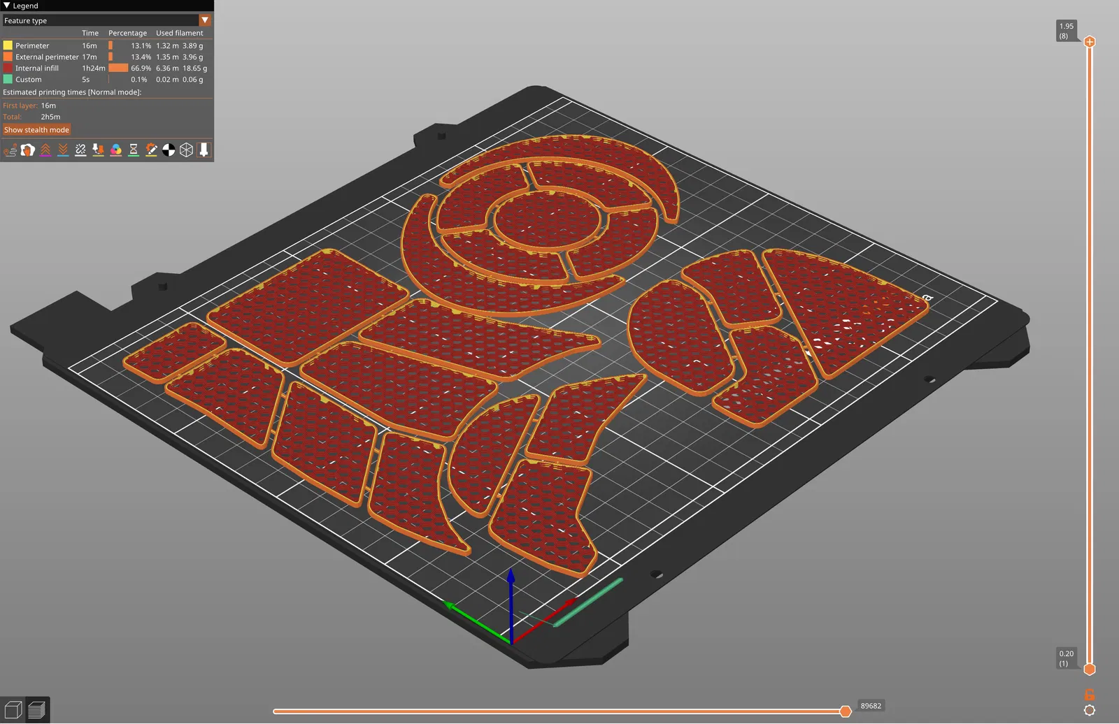 Đặt lớp trên và lớp dưới về 0, và chỉnh infill thành 20% Honeycomb. Các tệp 3mf đã được thiết lập sẵn với cấu hình đó.