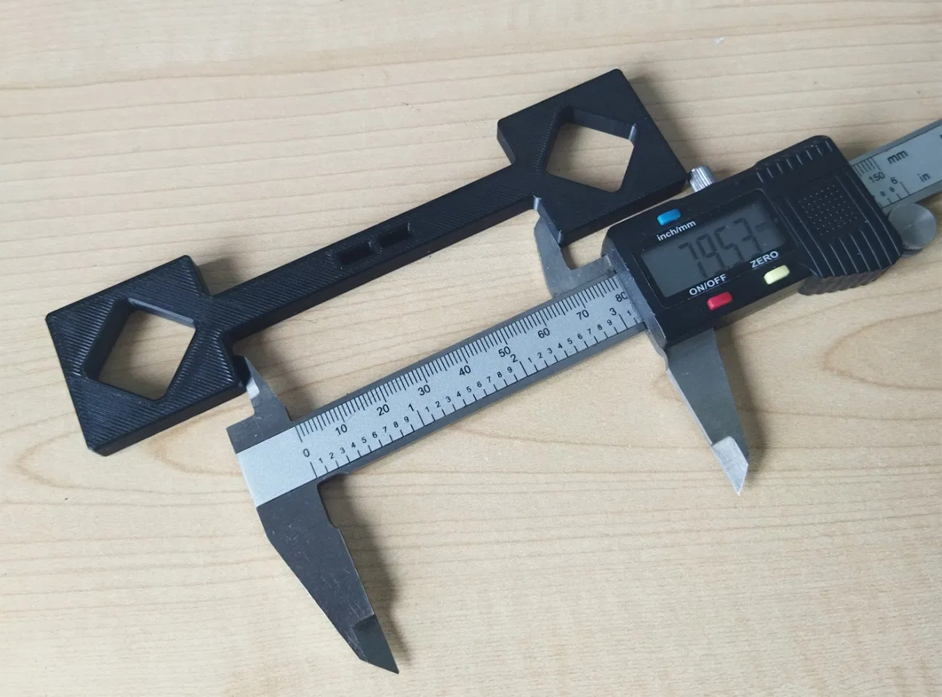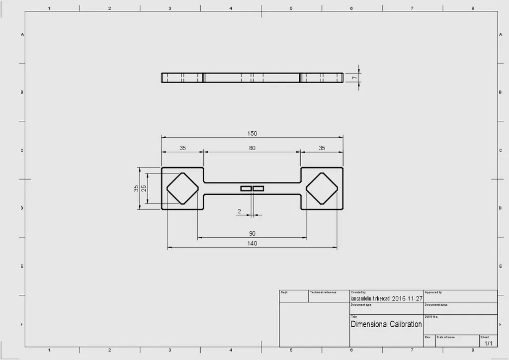 Ý tưởng là đo tất cả các chi tiết trừ cái nhỏ nhất. Những chi tiết lớn này sẽ bị ảnh hưởng nhiều nhất bởi lỗi do co rút, và ít bị ảnh hưởng bởi lỗi bù bán kính nhất. Phần trăm lỗi scale được điền vào.