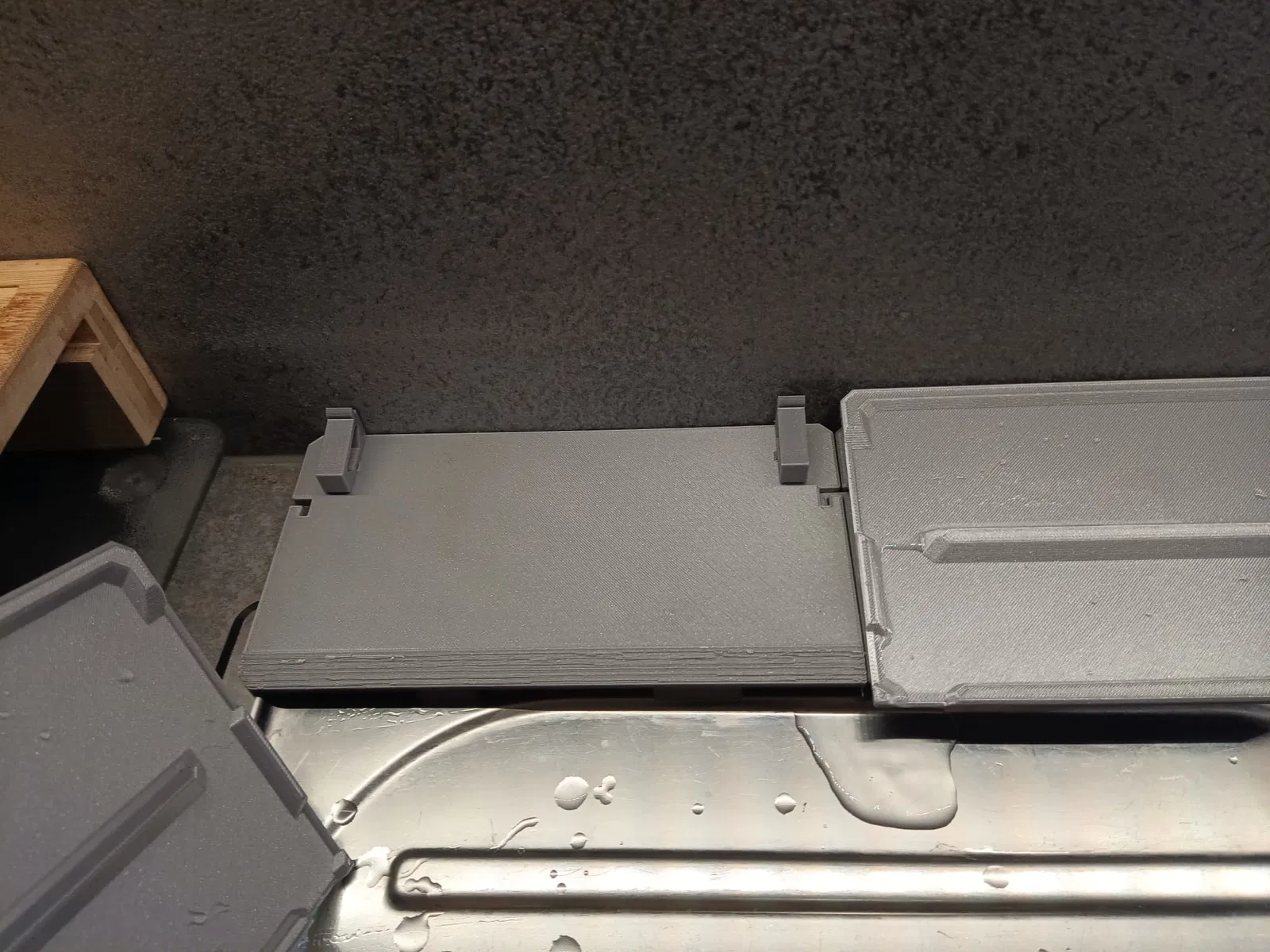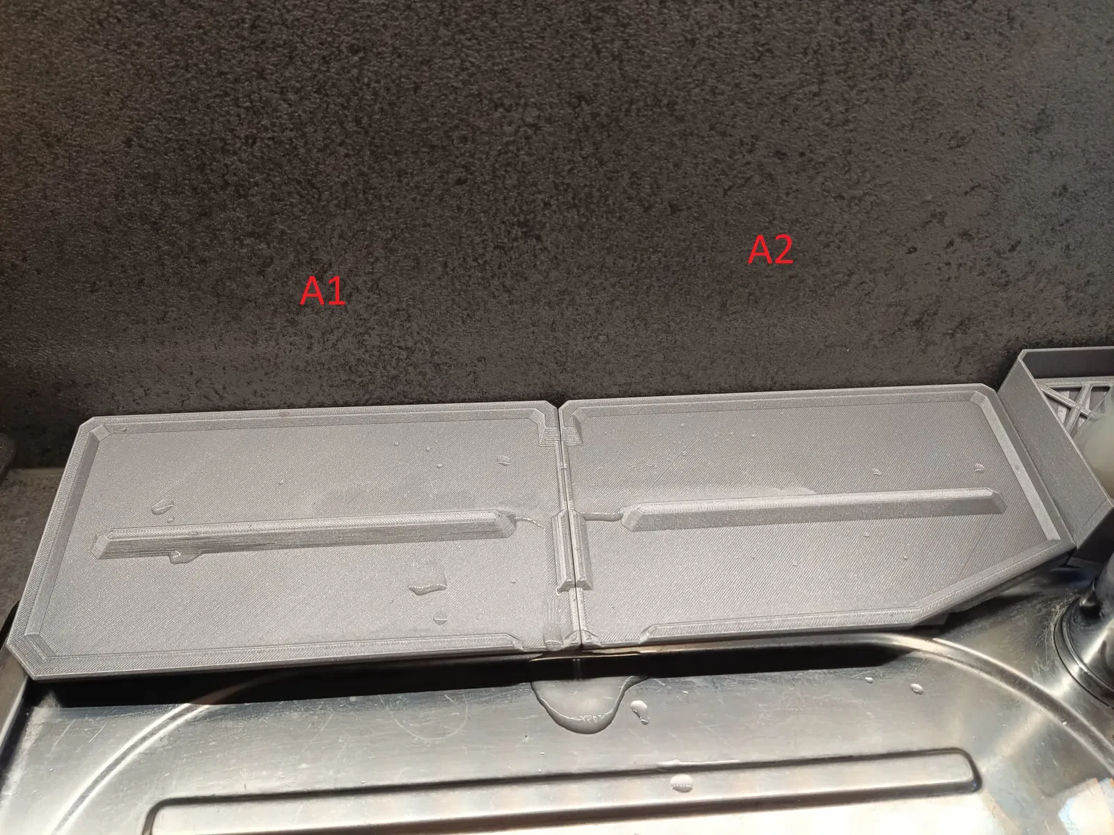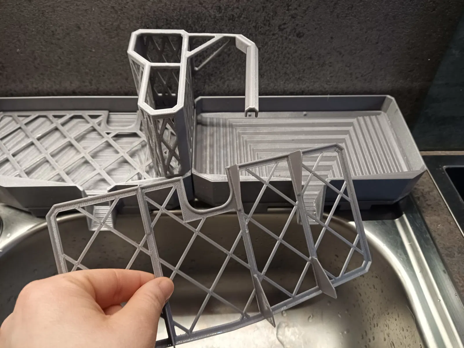 Nền tảng cơ bản của mỗi mô-đun được tối ưu hóa cho bồn rửa tiêu chuẩn như chúng tôi có. Nó được thiết kế để các mô-đun có độ sâu hơn một chút và do đó nhô ra một chút vào bồn rửa để nước có thể chảy vào bồn rửa. Các chân được tối ưu hóa để chúng cũng có thể tìm thấy chỗ giữ trong chính bồn rửa.