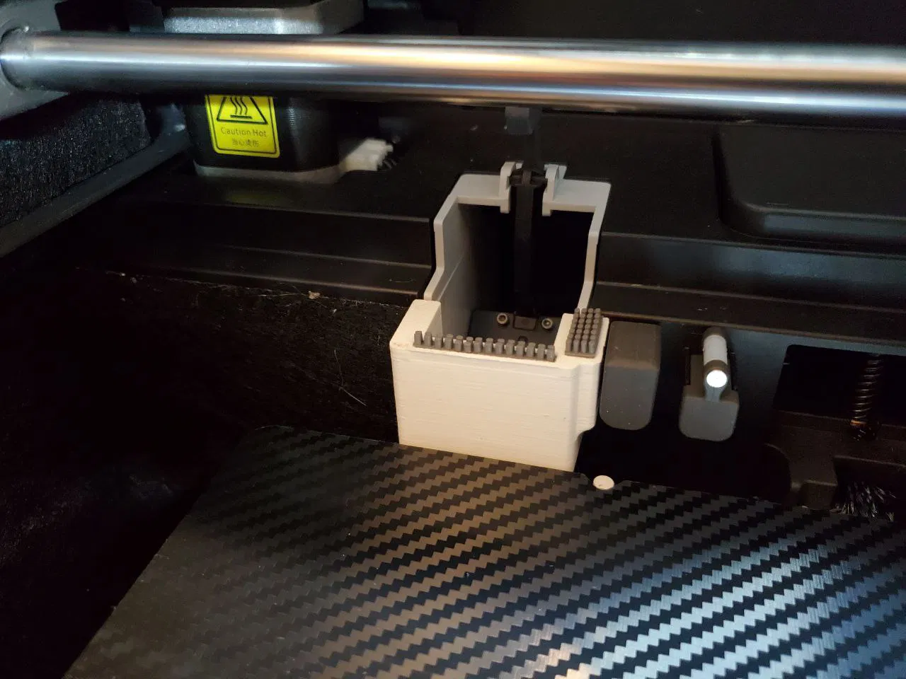 Cả hai cái gạt đều phải được cắt ngắn bớt, nếu không nó sẽ bị cạ vô nozzle nhiều quá. Cảm ơn M4d53 vì cái dụng cụ cắt gạt nozzle, giúp đưa cái cọ A1 mini của bạn về đúng chiều cao. Các bạn có thể xem cách dùng trong hình nha.