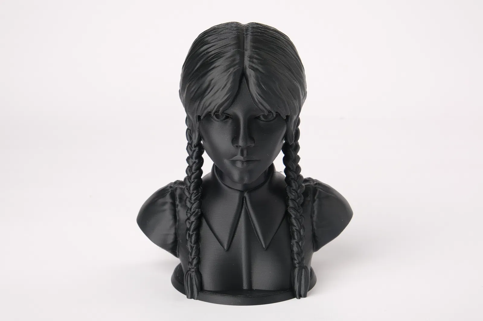 Xin chào, đây là Chân đế tai nghe Wednesday – một bức tượng bán thân theo phong cách gothic ấn tượng, lấy cảm hứng từ hình tượng kinh điển Wednesday Addams, với mái tóc tết và cổ áo cổ điển. Được thiết kế để giữ tai nghe của bạn một cách sành điệu, chân đế này mang lại vẻ ngoài bí ẩn, thanh lịch cho bất kỳ bàn làm việc hay không gian văn phòng nào. In trên chất liệu đen mờ bóng bẩy, nó vừa là một phụ kiện chức năng vừa là một món đồ độc đáo, ấn tượng.
