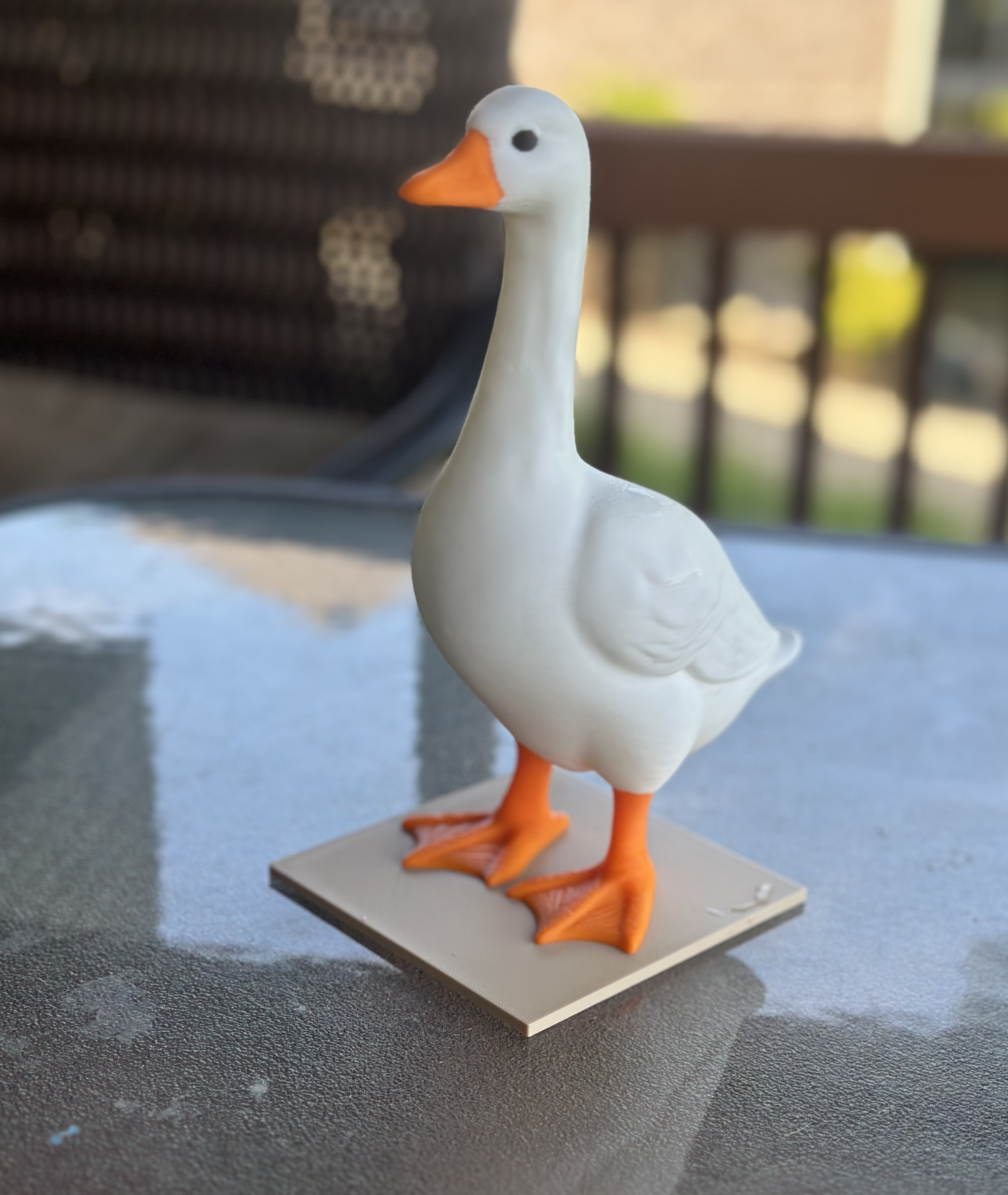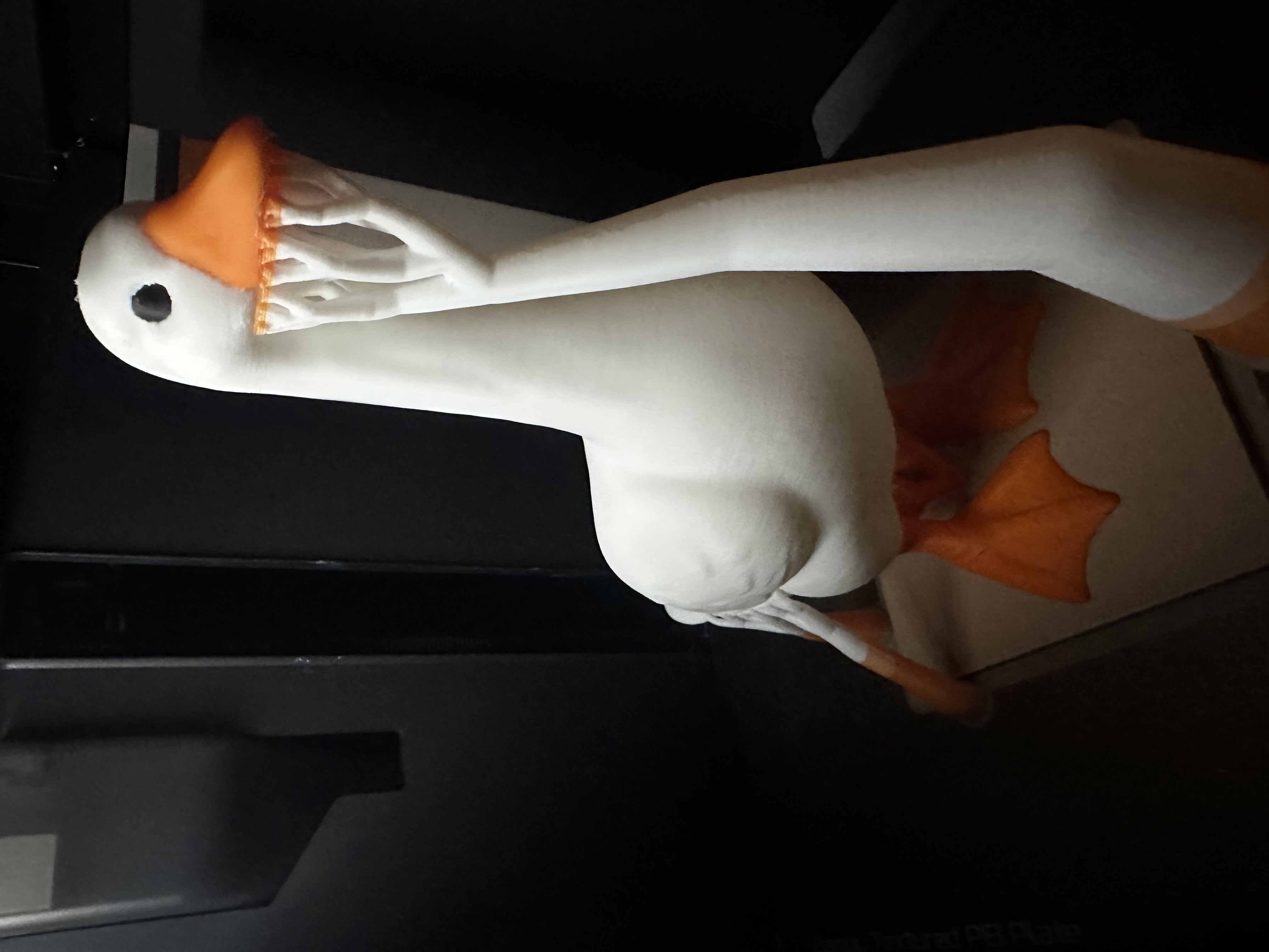 Một người bạn có con ngỗng ngoài hiên thích lắm, trang trí theo lễ. Họ ước có con cỡ để bàn để trang trí lớp học. Thế là ra đời em ngỗng này, in bằng PLA, kích thước X=107.5, Y=143.8, Z=217.2, với 8% Infill dạng Gyroid.