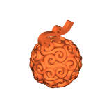 Móc khóa Gomu Gomu no Mi đa sắc, in 3D thành nhiều bộ phận. Bao gồm 2 nửa trái, cuống và miếng định tâm. Tối ưu cho máy in đơn trục, cần điều chỉnh dung sai (-0.2mm) cho cuống và miếng định tâm. Sử dụng ít hỗ trợ, khuyên dùng chiều cao lớp thích ứng. Cần keo dán và bù chân voi (-0.15mm) để hoàn thiện.