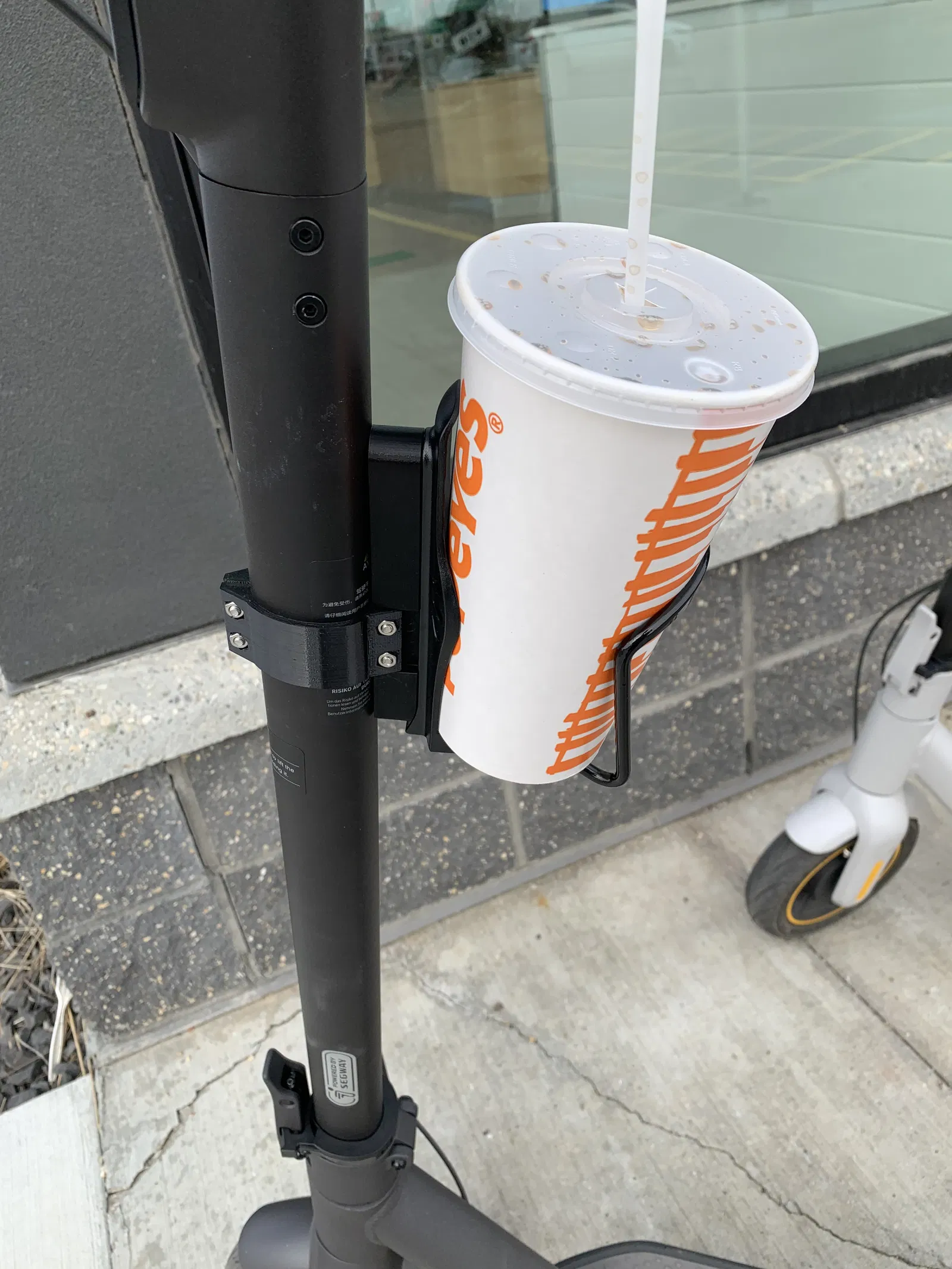 Cái đế gắn này có thể dùng để gắn nhiều thứ khác nhau lên xe scooter của bạn đó. Sẽ tuyệt vời lắm nếu có ai đó thiết kế và làm thêm mấy cái để gắn vô đây (có ai muốn làm cái chỗ để ly 3D printer không?).