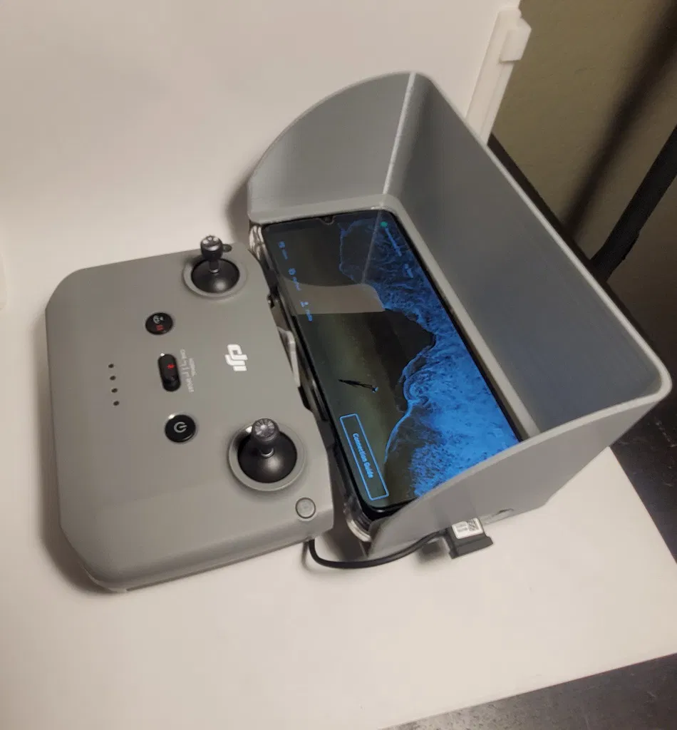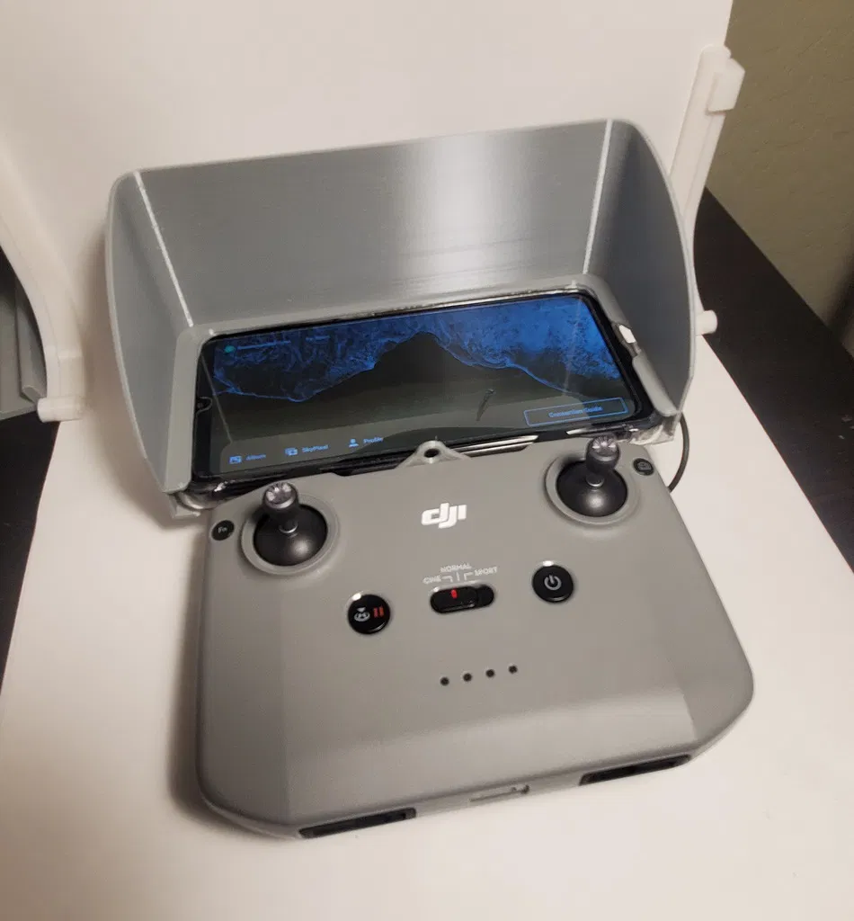 Tấm che nắng này làm riêng cho tay cầm điều khiển của DJI Mini 2 và Mini 3, đặc biệt là vừa với điện thoại Samsung A32 5G đang có ốp lưng. Tuy nhiên, ốp lưng của bạn có thể hơi khác một chút, bạn nên xem kỹ trước khi in nha.