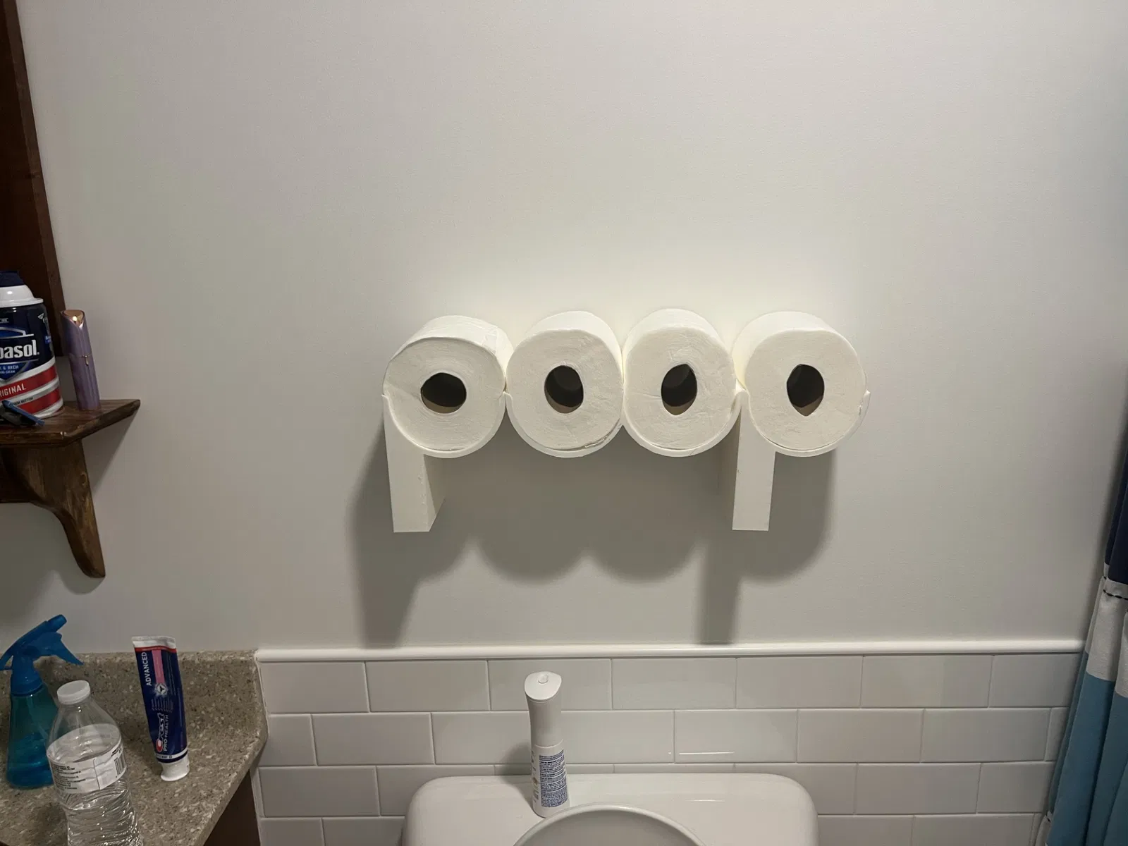 Vừa là tác phẩm điêu khắc, vừa là nơi lưu trữ — Rollphabet là một cách chơi chữ đầy thú vị với thiết kế phòng tắm. Phiên bản này có khung hình chữ “P” một nửa với hai miếng chèn cong mô phỏng cuộn giấy vệ sinh, hoàn thiện chữ cái một cách đầy phong cách.