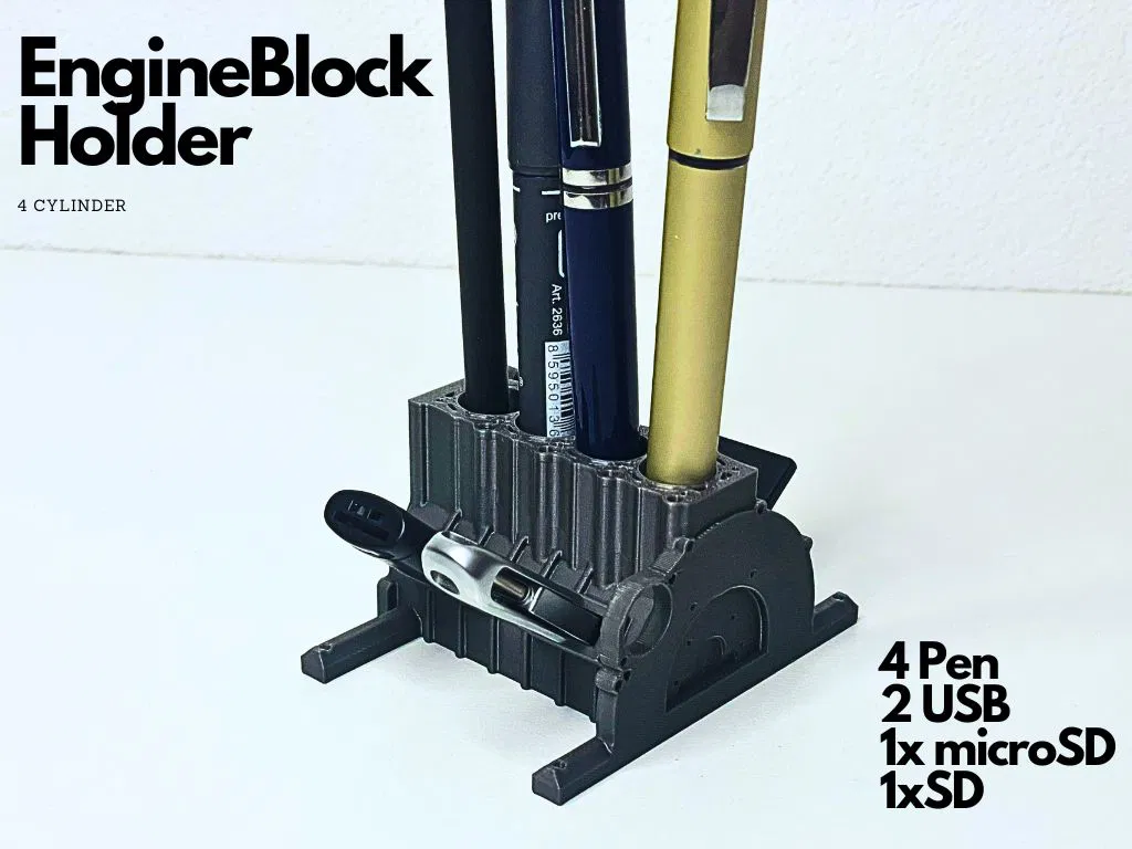 Cái holder bút hình khối động cơ xe hơi này đẹp lắm nha, lấy cảm hứng từ thiết kế của khối động cơ 4 xi-lanh. EngineBlock Holder vừa có công năng, vừa nhìn bắt mắt, là phụ kiện tuyệt vời cho mấy bạn mê công nghệ với mê xe cộ luôn. Để trên bàn làm việc hay xưởng đều ok hết. In dễ lắm, không cần support gì đâu.