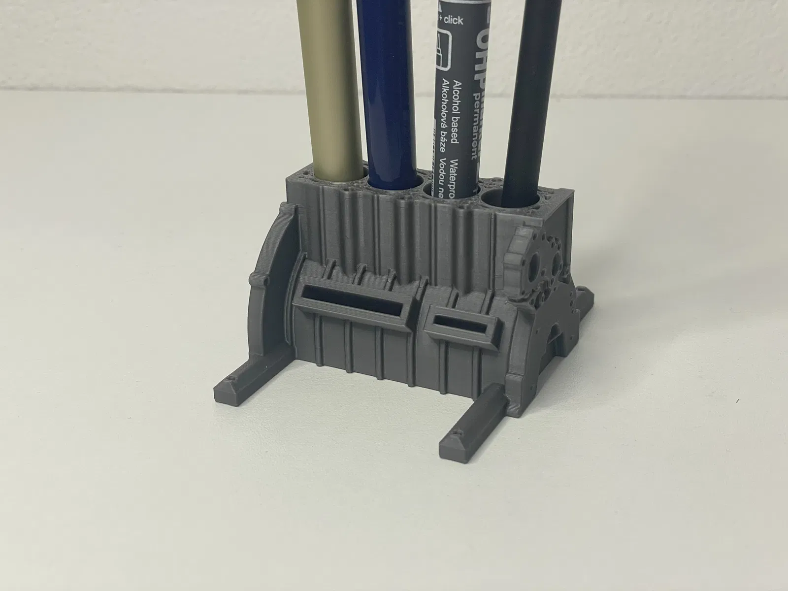 Tạo điểm nhấn cho bàn làm việc với Chân Cắm Bút Hình Khối Động Cơ Xe Hơi. Thiết kế độc đáo, tiện lợi lưu trữ bút, USB, thẻ nhớ microSD và SD. In 3D dễ dàng, không cần support. Hoàn hảo cho người yêu xe và công nghệ!