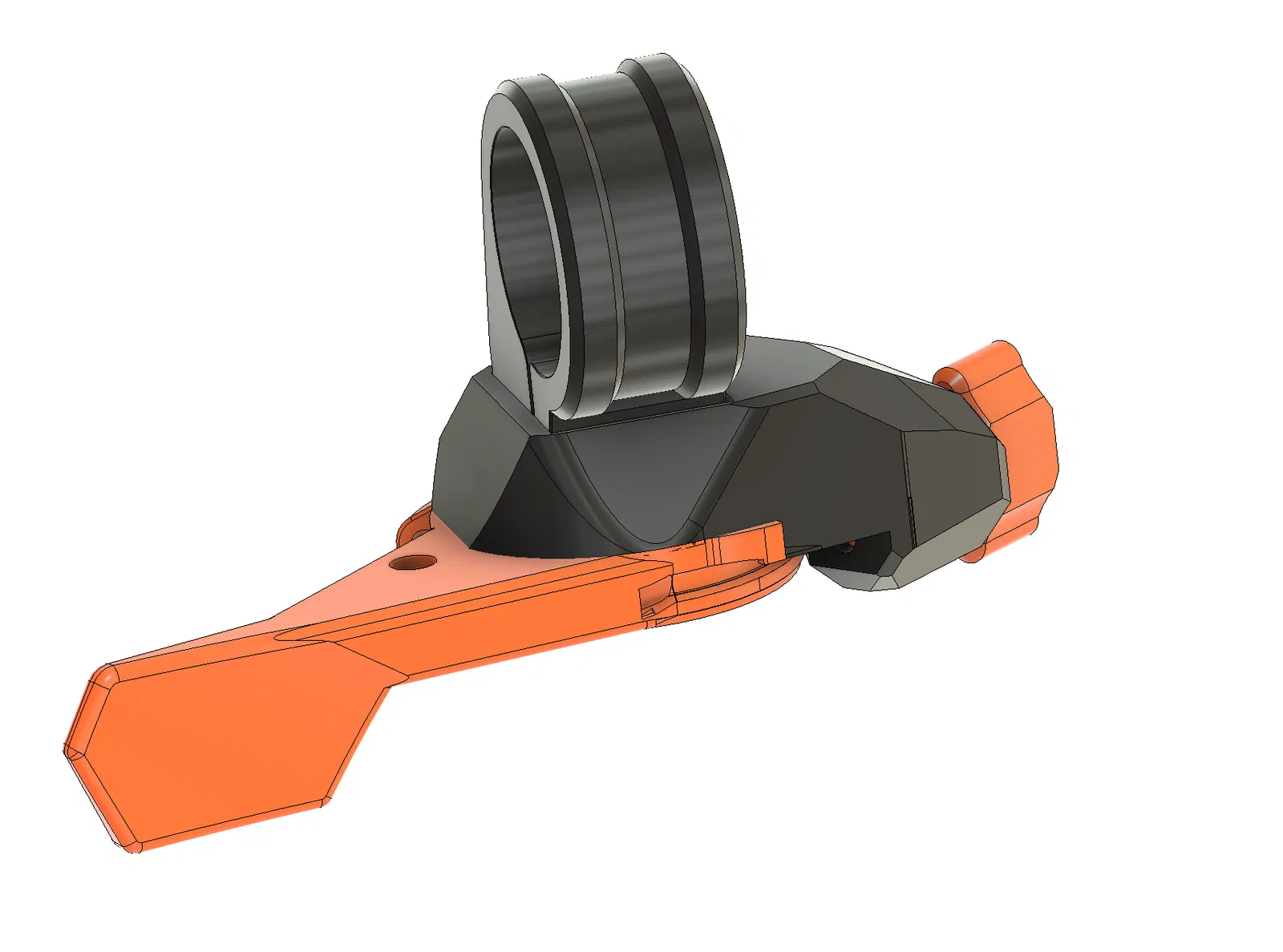 Mô hình tay gạt điều khiển cốt yên dropper bằng dây cáp, sử dụng vòng bi cho trục xoay và ốc m5 để cố định, ốc m4 siết cáp. In bằng PETG hoặc carbon fiber nylon. Cần 1 vòng bi 26x17x5mm và các loại ốc đai ốc đi kèm.