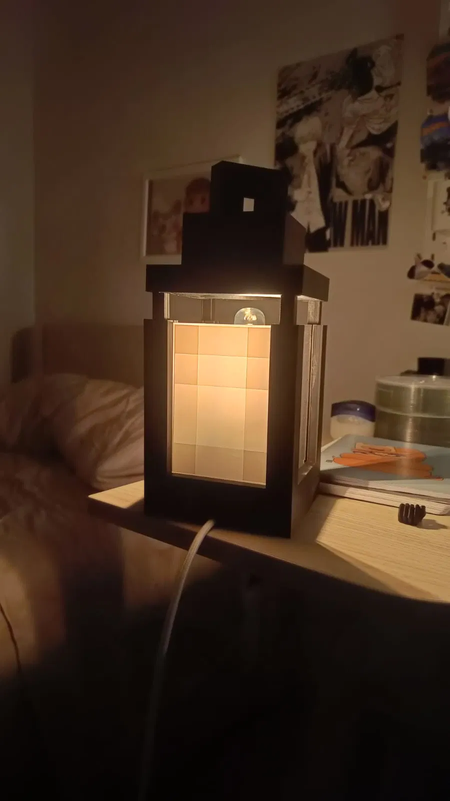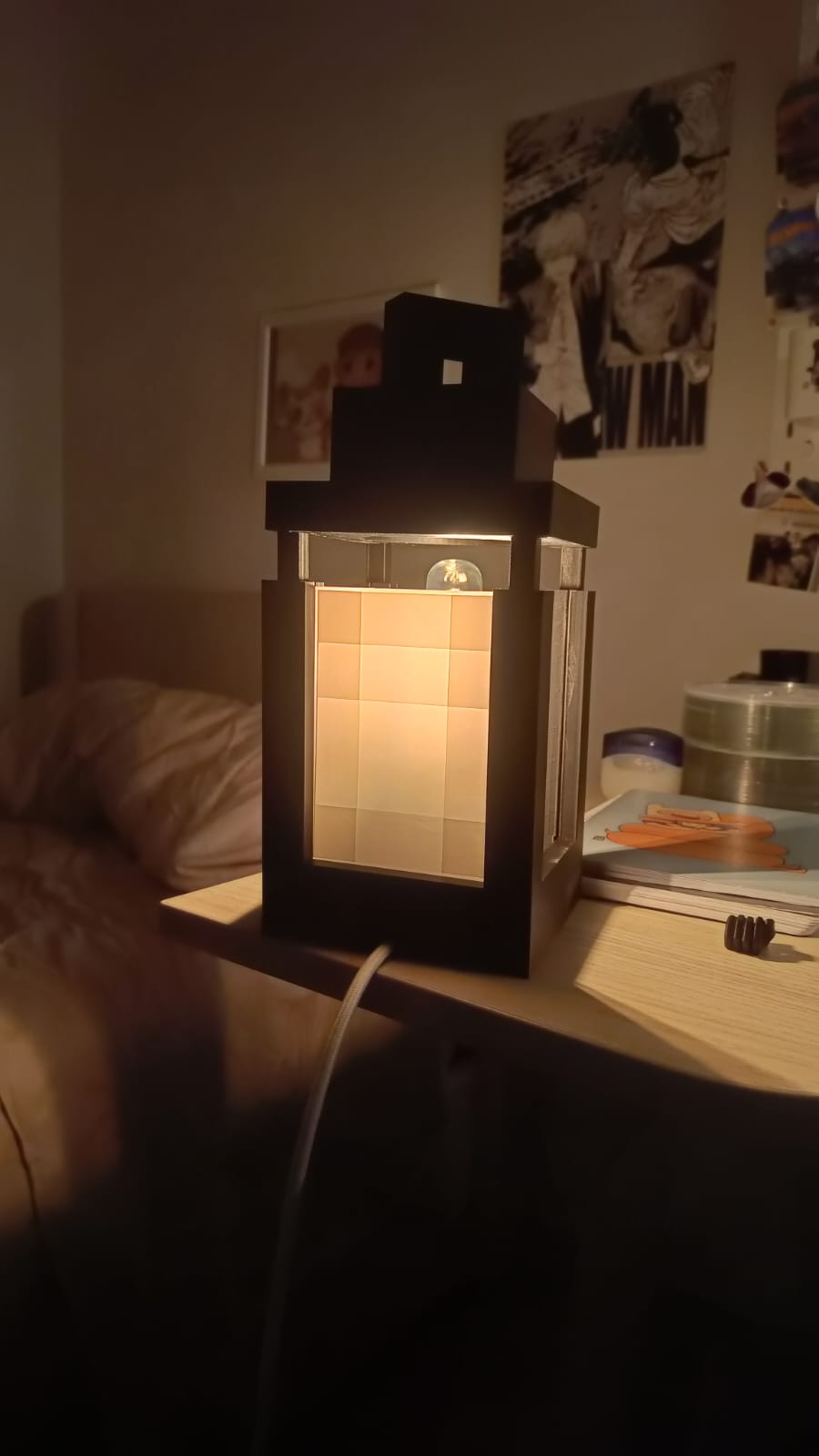 Chiếc đèn Minecraft này nhìn cũng bự lắm nha, xài chung với bóng đèn và dây đèn của Ikea là bao đẹp. Anh em nào thích decor phòng theo phong cách Minecraft thì hốt lẹ nha!