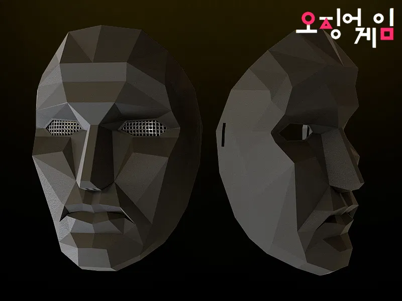 Mô hình mặt nạ của Người Chỉ Huy (Front Man) trong phim Squid Game, có kèm lưới che mắt để đảm bảo sự bí ẩn cho người đeo. Sản phẩm được đăng tải bởi kimgooni trên Thingiverse.