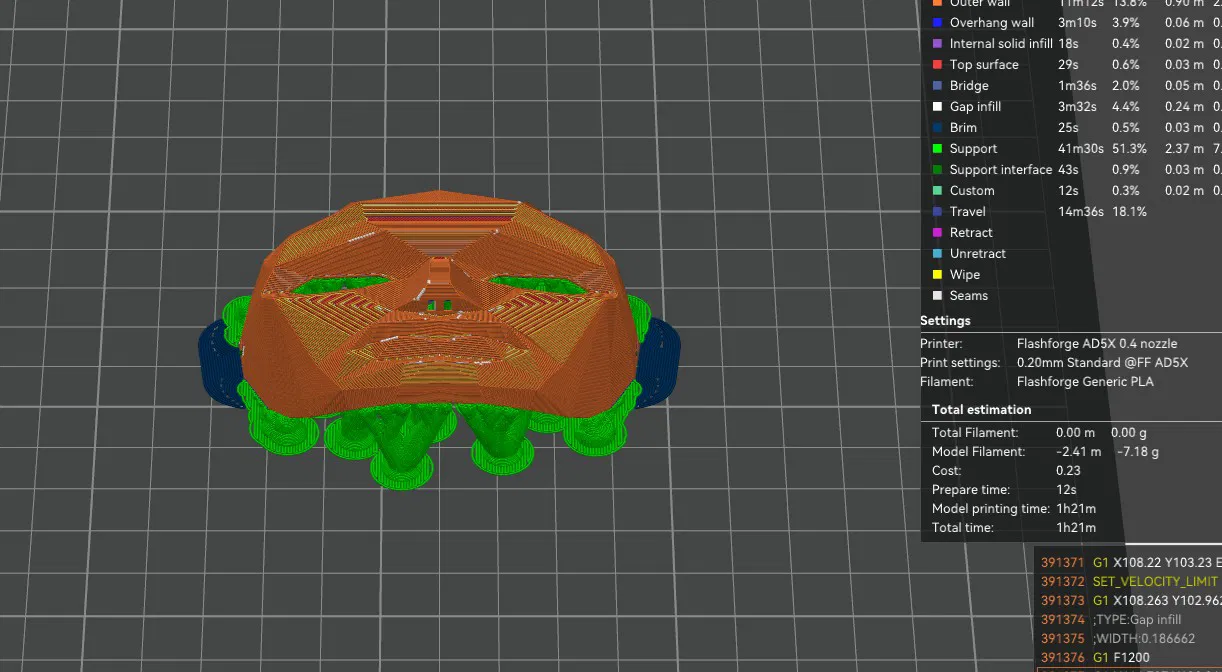 Sidenote: Qua tất cả các lần thử nghiệm và vị trí in, cái mặt nạ mini này in ra siêu đẹp nếu bạn in nó nằm xuống với mặt nạ ngửa lên & dùng tree supports. Như vậy thì mặt ngoài của mặt nạ sẽ không bị các vết tì của support, chỉ có bên trong mặt nạ là có vết support thôi. Mình cũng khuyên bạn là nên chà nhám các cạnh và lỗ mắt của mặt nạ vì chúng có thể hơi sắc đó.