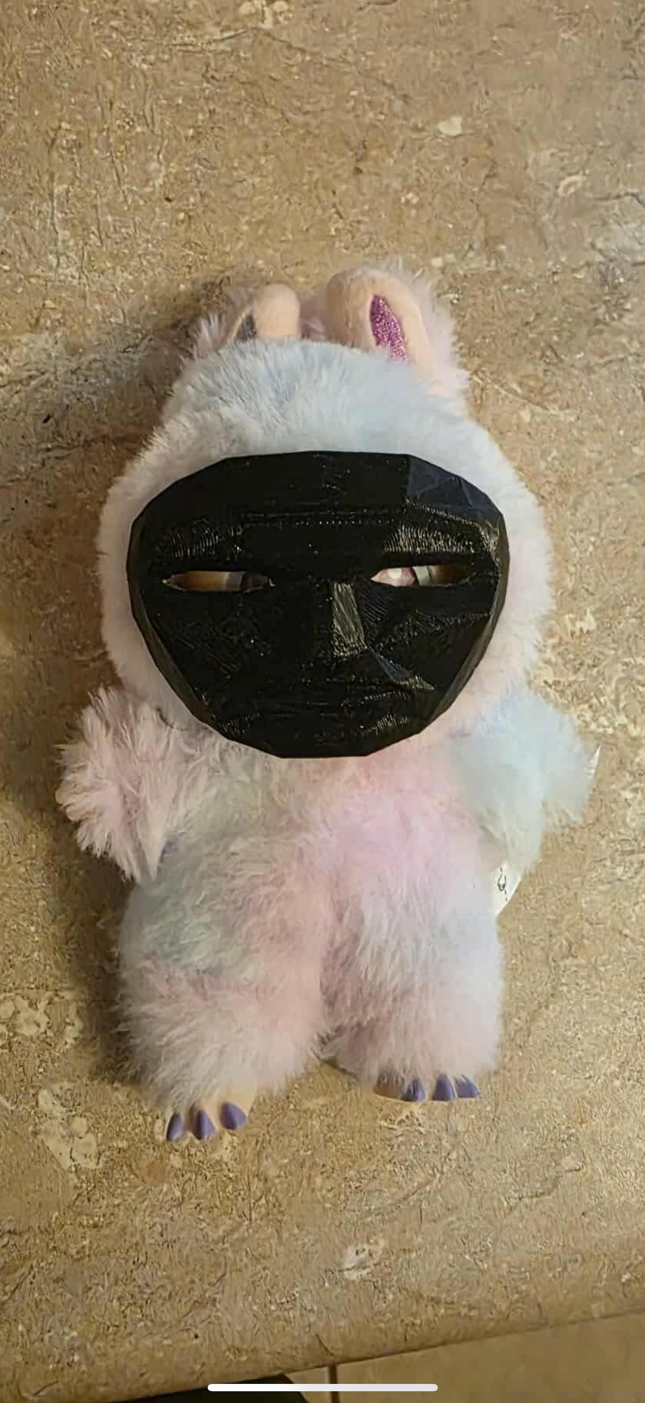Phiên bản Labubu điều chỉnh của mình cho cái mặt nạ này đã được thử nghiệm và in trên máy Flashforge AD5X bằng sợi PLA màu đen của Sunlu!