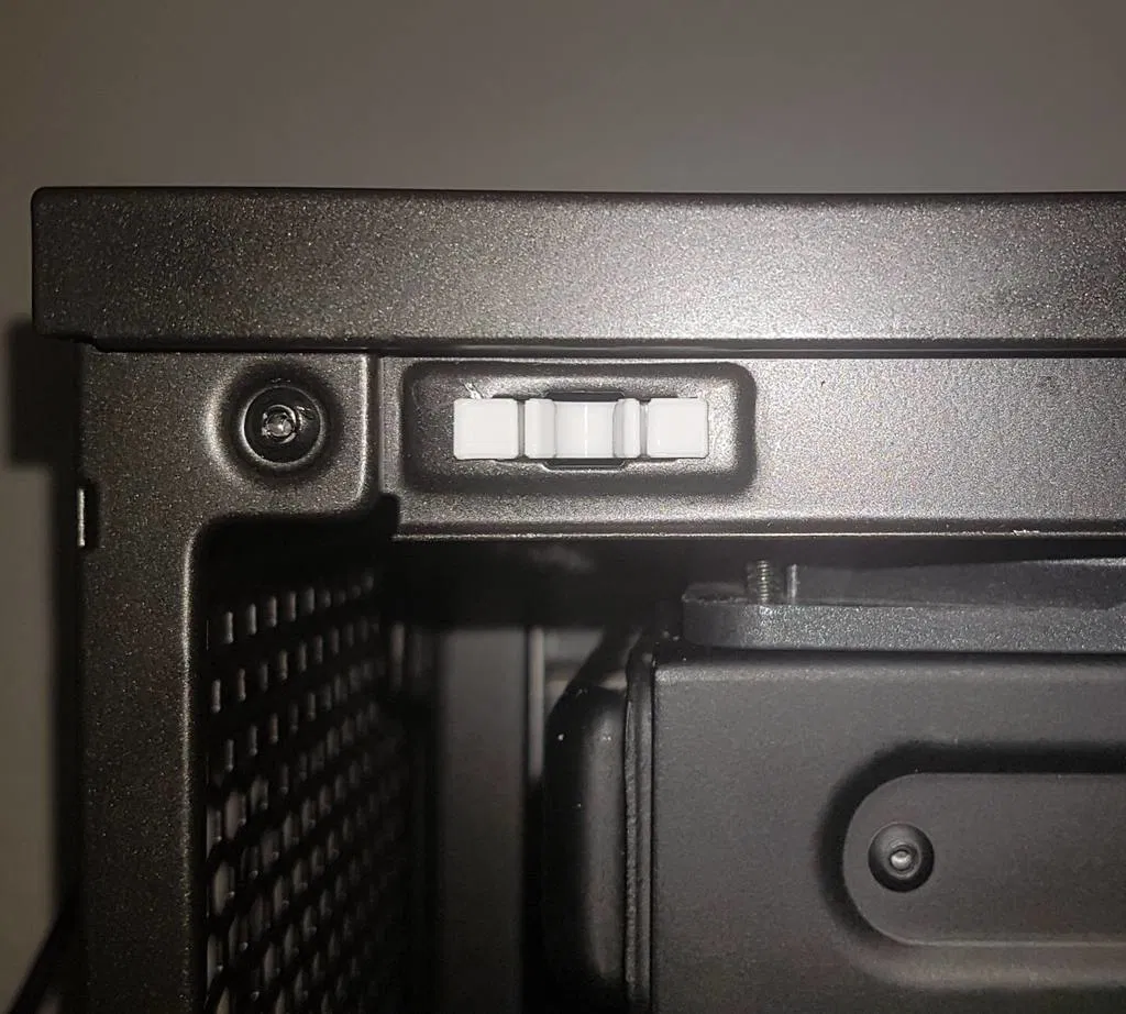 Tui mới mua cái case Fractal Design Define R6, mà để ý thấy một góc cái cửa hông bị lỏng lẻo lắm. Kiểm tra kỹ mới thấy cái kẹp giữ cái chốt cửa này bị gãy.