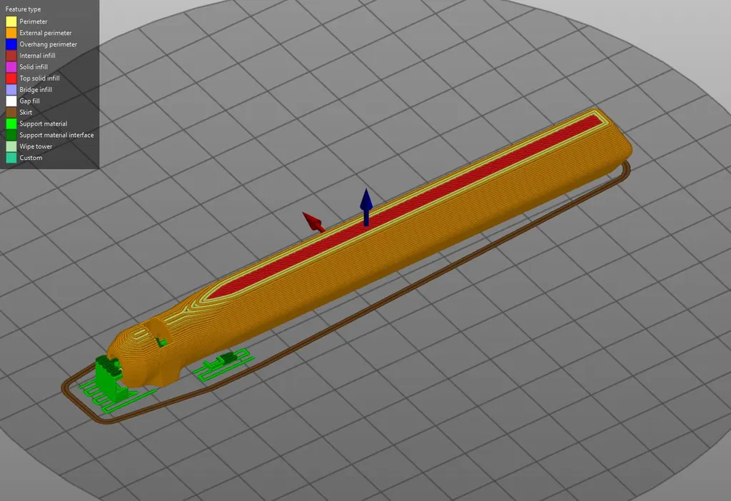 In trên mặt phẳng của nó bằng bất kỳ vật liệu nào. Hướng đặt đúng được hiển thị ở trên trong các hình ảnh. Không khuyến khích sử dụng support trừ khi máy in của bạn bị lỗi căn chỉnh. Nếu bạn sử dụng support, bạn có thể sẽ cần phải khoan lỗ để loại bỏ chúng.