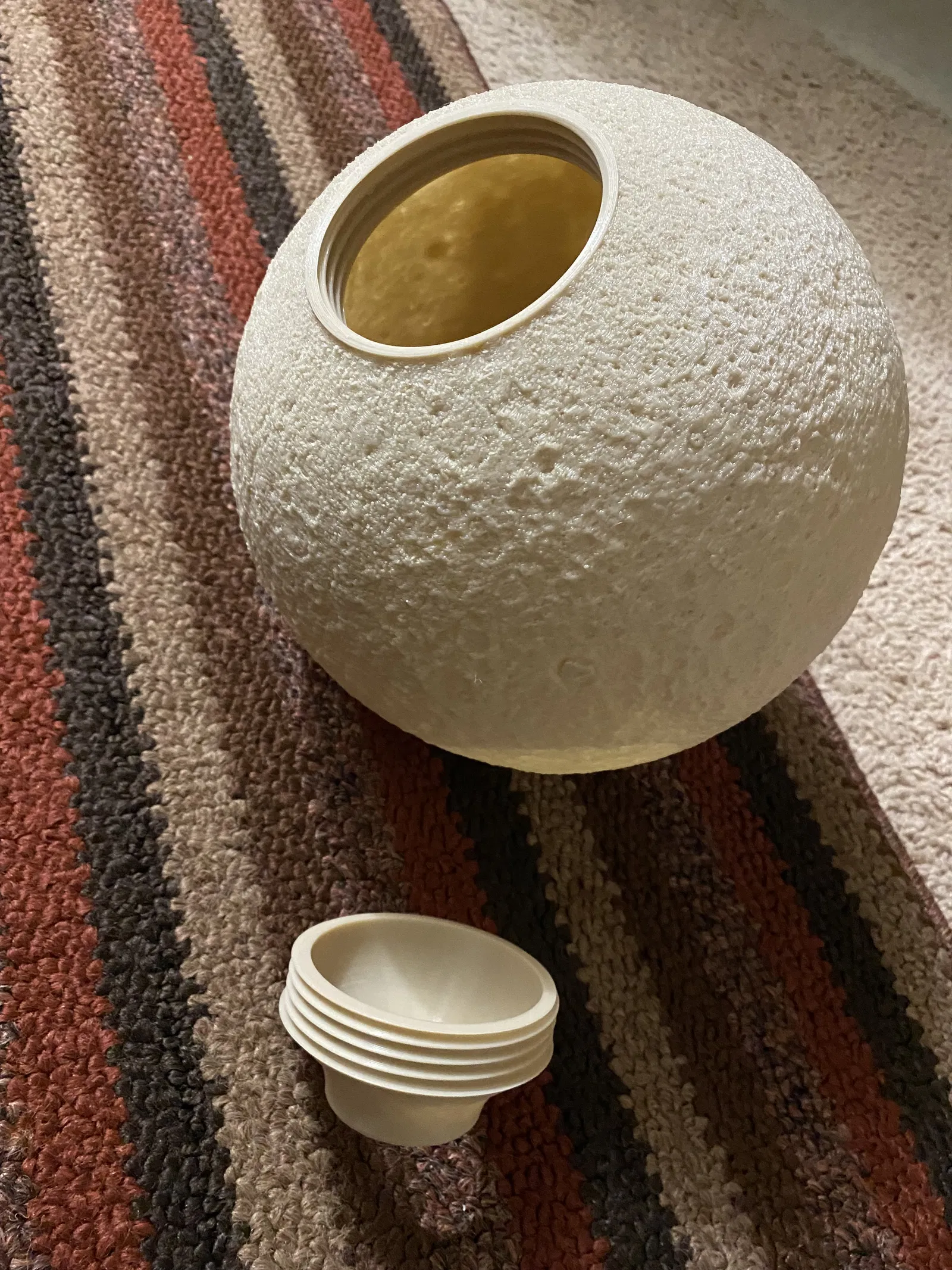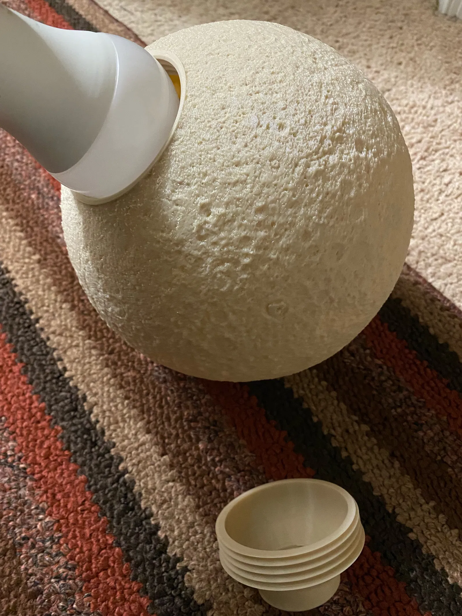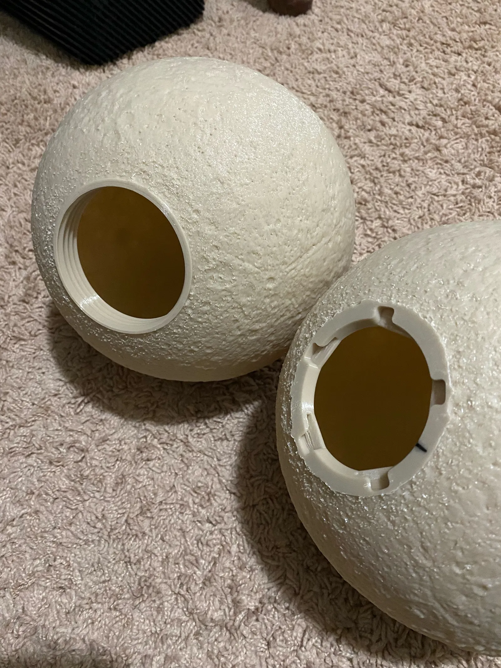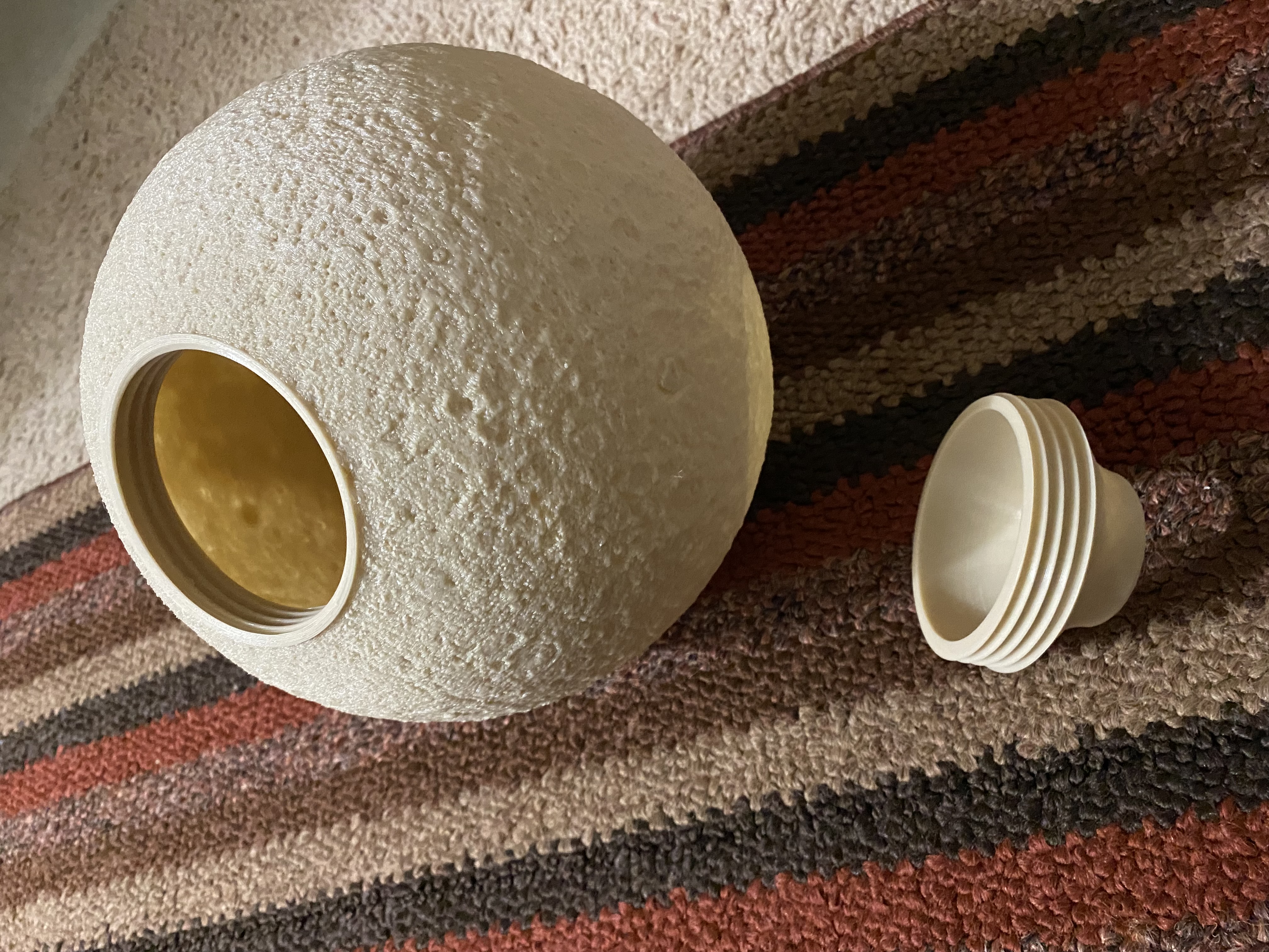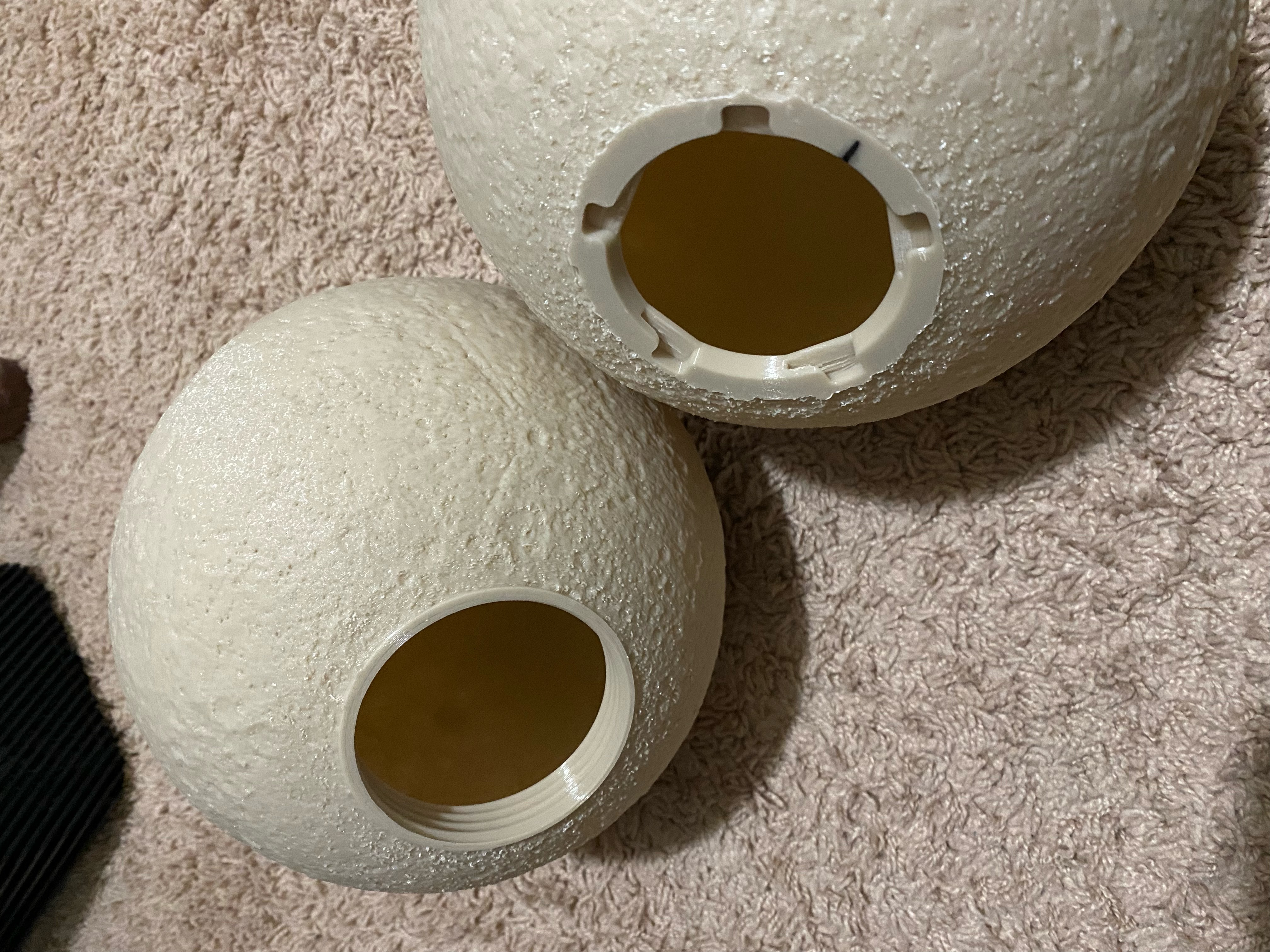 Cái này giúp tăng đường kính sử dụng của miệng đế đèn mặt trăng từ <60mm lên >70mm. Mình có đính kèm một vài bộ chuyển đổi để gắn hai đèn mặt trăng như bên dưới. Hy vọng đế vặn ren sẽ giúp dễ dàng xử lý dung sai hơn. Một trong những điểm mình không thích nhất ở thiết kế ban đầu là dung sai quá chặt, mình đã phải chà nhám khá nhiều.