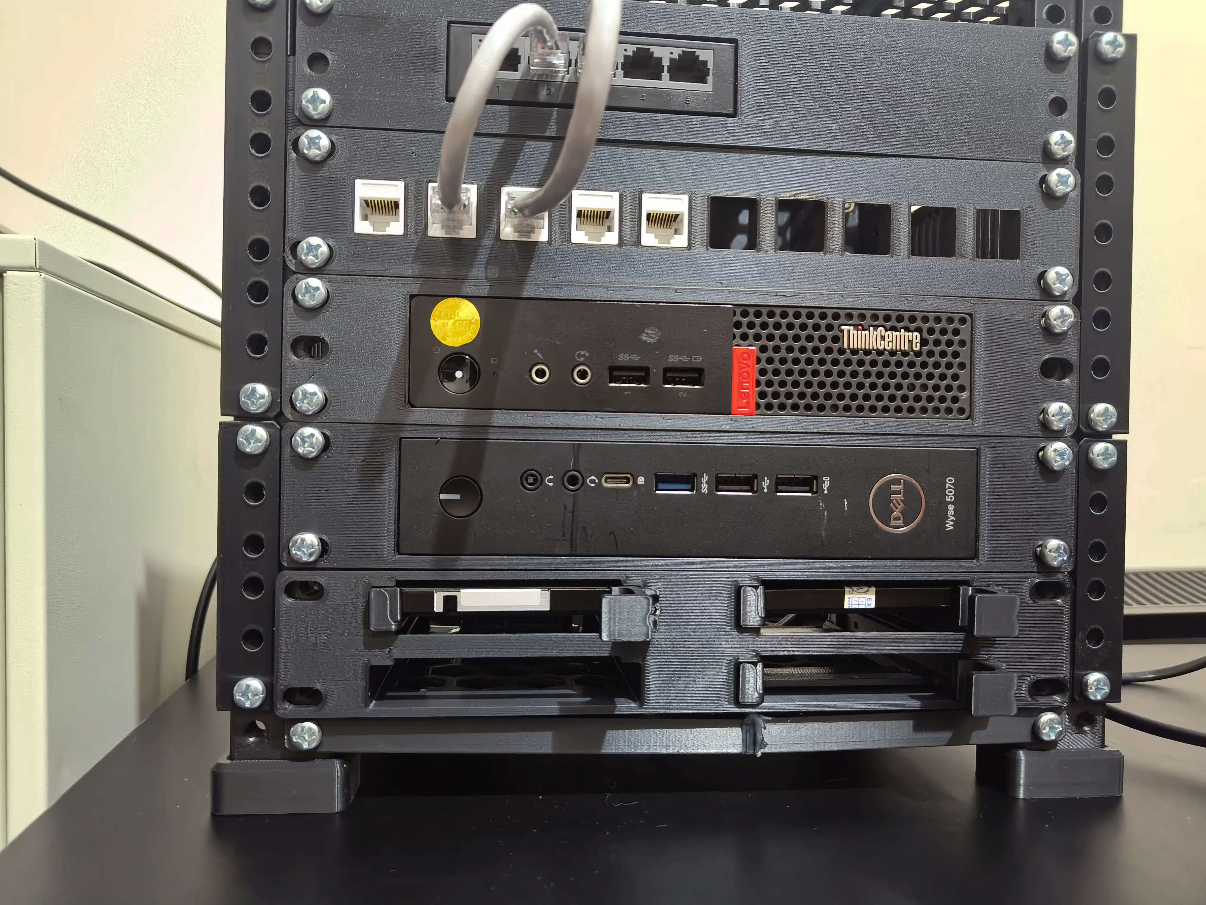 Khay gắn rack 10-inch (nửa chiều rộng) được thiết kế riêng cho Dell Wyse 5070. Mô hình này được làm với dung sai 0.5 mm, sử dụng vật liệu PLA với độ dày lớp 0.2 mm và độ đầy ruột 13%. Hoàn hảo cho việc tổ chức thiết bị của bạn gọn gàng.